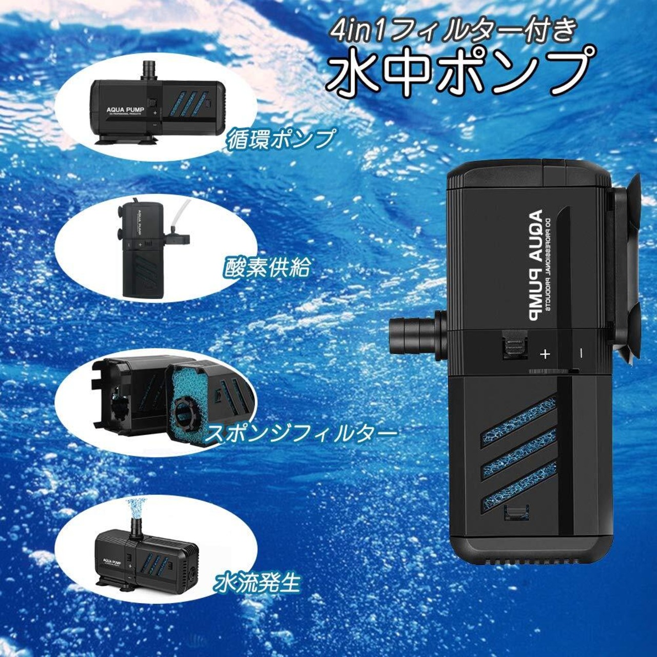 「水槽の水質を良くしたい…」そんなあなたにぴったりなのが、この「水中フィルター式水中ポンプ」です!便利な機能を兼ね備えた4in1設計で、あなたの水槽環境をサポートします。