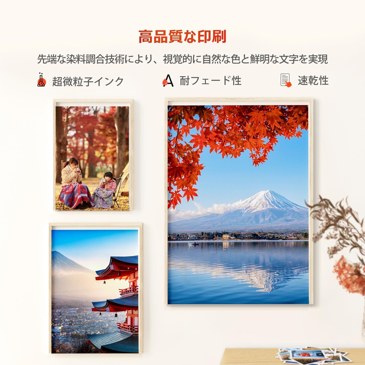 鮮明な色彩とクリアな印刷品質を実現しています。文書や写真を美しく仕上げ、プロフェッショナルな仕上がりを求める方にもお勧めです。