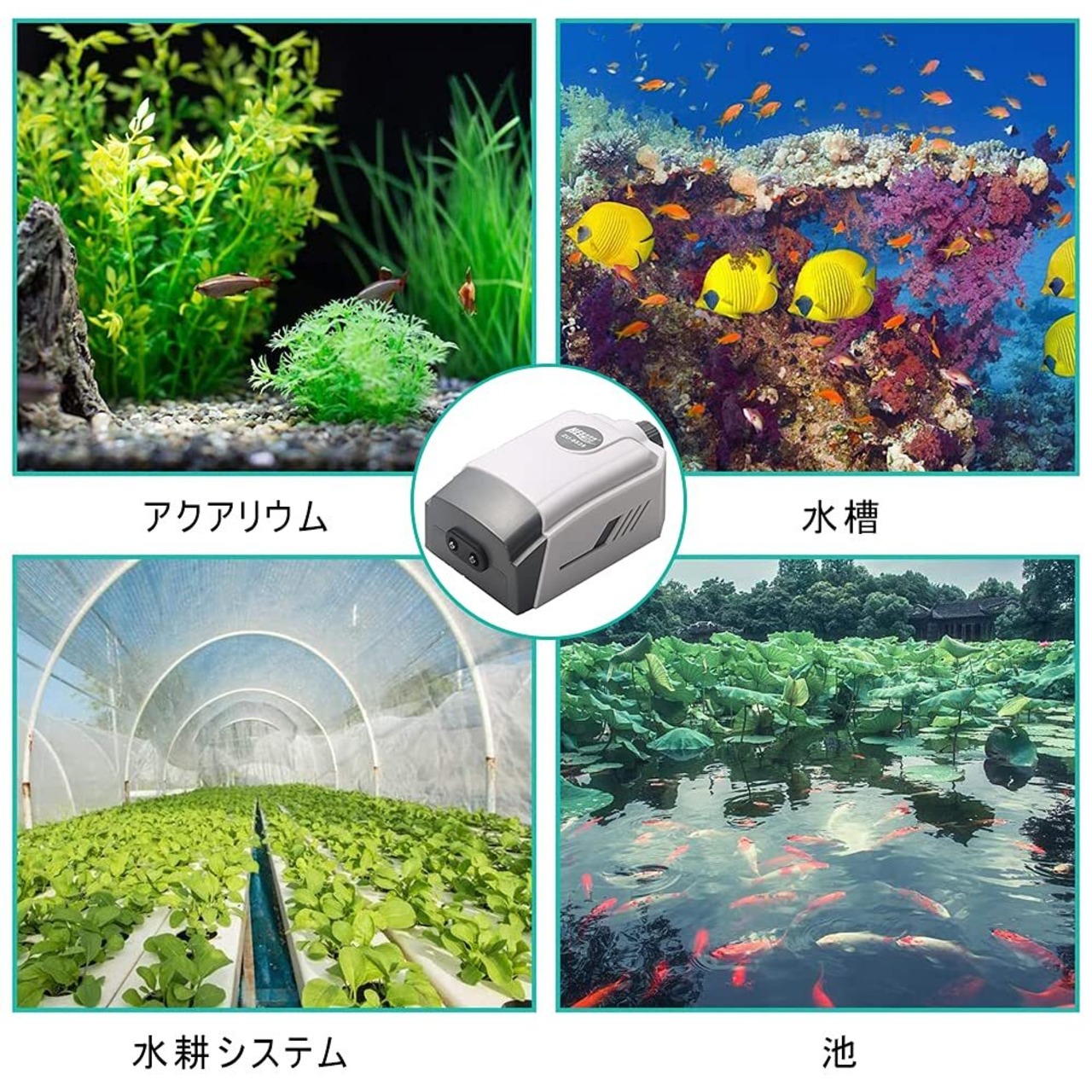◆【幅広い互換性】◆この水槽用静音エアポンプは、水槽の水流と酸素を増やすことによって水の健康程度を増やして、お飼った魚にもっと快適な環境を提供し、水族館の全体的な健康程度を改善し、中、小サイズの水槽に非常に適します。