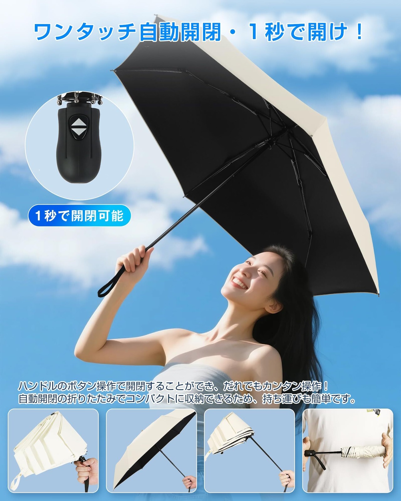 【ワンタッチ自動開閉傘】雨の日の悩みとして、傘を閉じている間に濡れてしまうストレスがあります。荷物やバッグを持っていると手がふさがってしまいさらに大変です。業界最新な技術を採用されています、持ち手部分にあるボタンを押すだけで傘を開いたり閉じたりできます。片手でも簡単に開閉できます。傘を閉じる時に撥ねてくる雨粒で袖が濡れる気まずさにさようなら!突然雨が降り出し、傘を開くのに手間取り濡れてしまったという経験がある人も多いのではないでしょうか。この傘はワンタッチ自動開閉式なので、スピーディに開けられます。