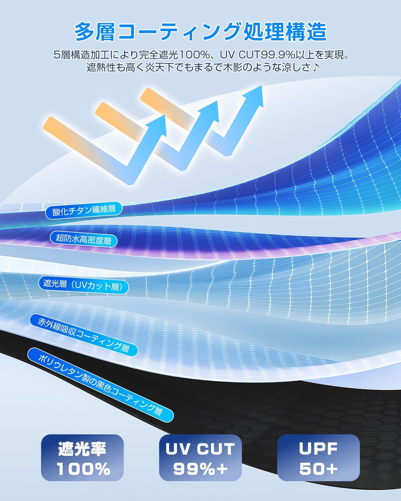 特別なUVカット素材を使用し、紫外線をしっかり遮断します。日焼けが気になる季節のお出かけや、屋外活動に最適です。高い遮光性を兼ね備え、肌をしっかり守ります。