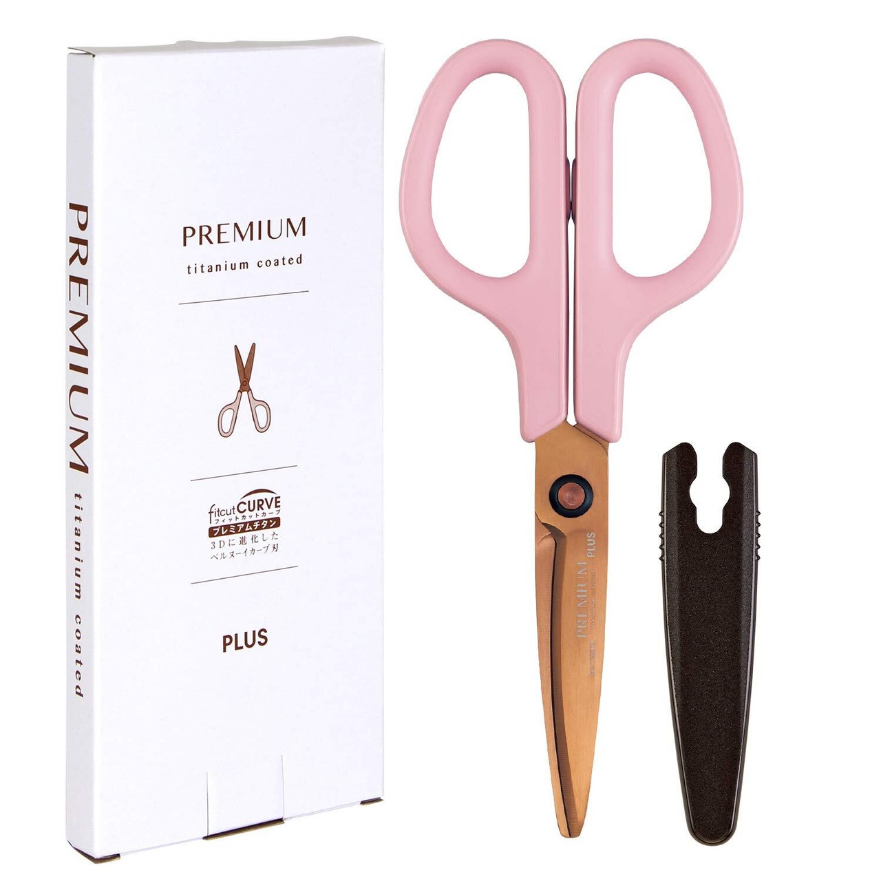 プラス はさみ 汚れ・サビに強い フィットカットカーブ プレミアムチタン ベタつかない 30度 切れ味継続加工 紙箱包装 ピンク 35-721