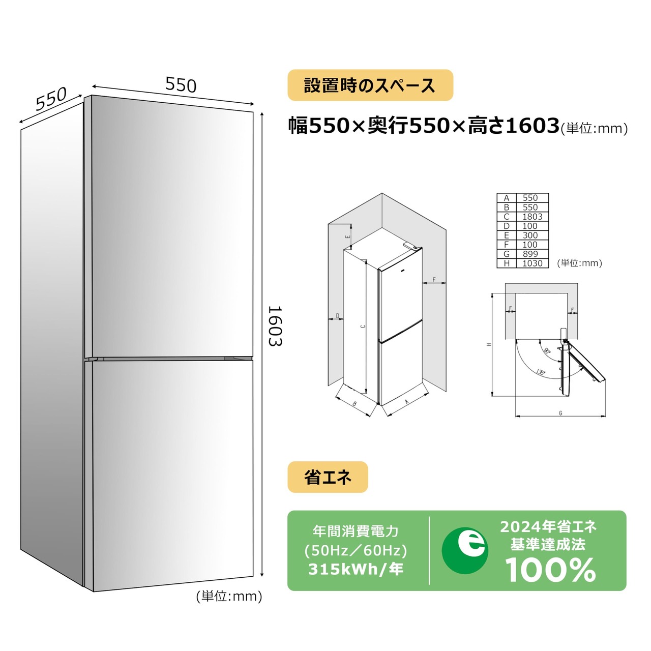 ▼製品寸法(幅×奥行×高さ):幅550×奥行550×高さ1603mm