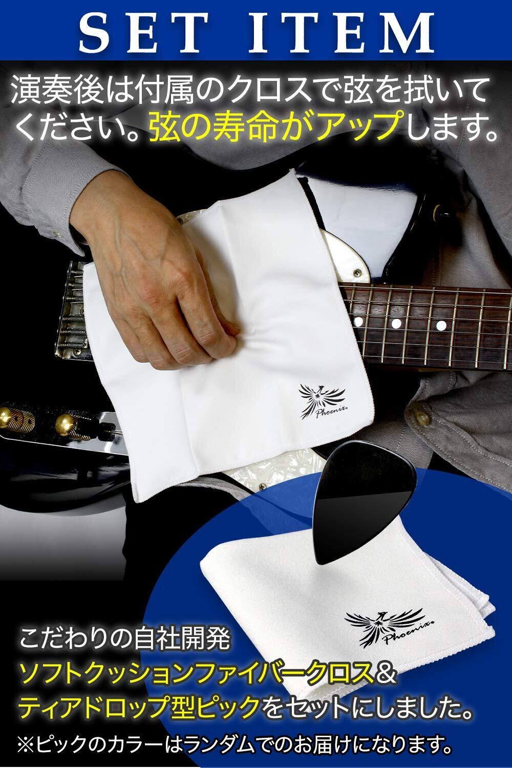 【特価商品】Phoenix エレキ ギター 弦 3set ニッケル バランス良い音質 テンション 切れにくい ポールエンド色分け/お手入れクロス&ピック付き<長期45日間> (レギュラーライト)