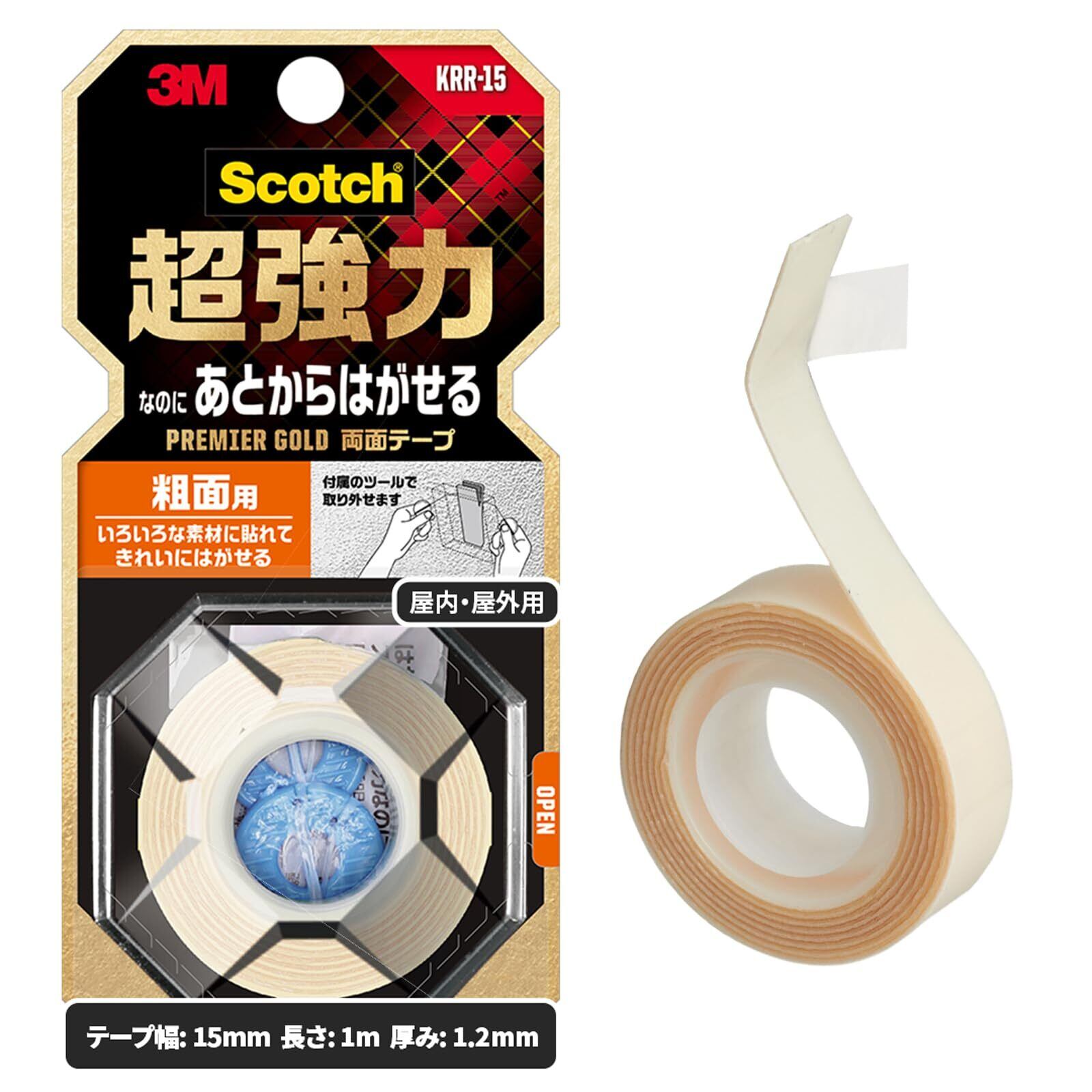 スコッチ 超強力なのにあとからはがせる両面テープ プレミアゴールド 粗面用 KRR-15