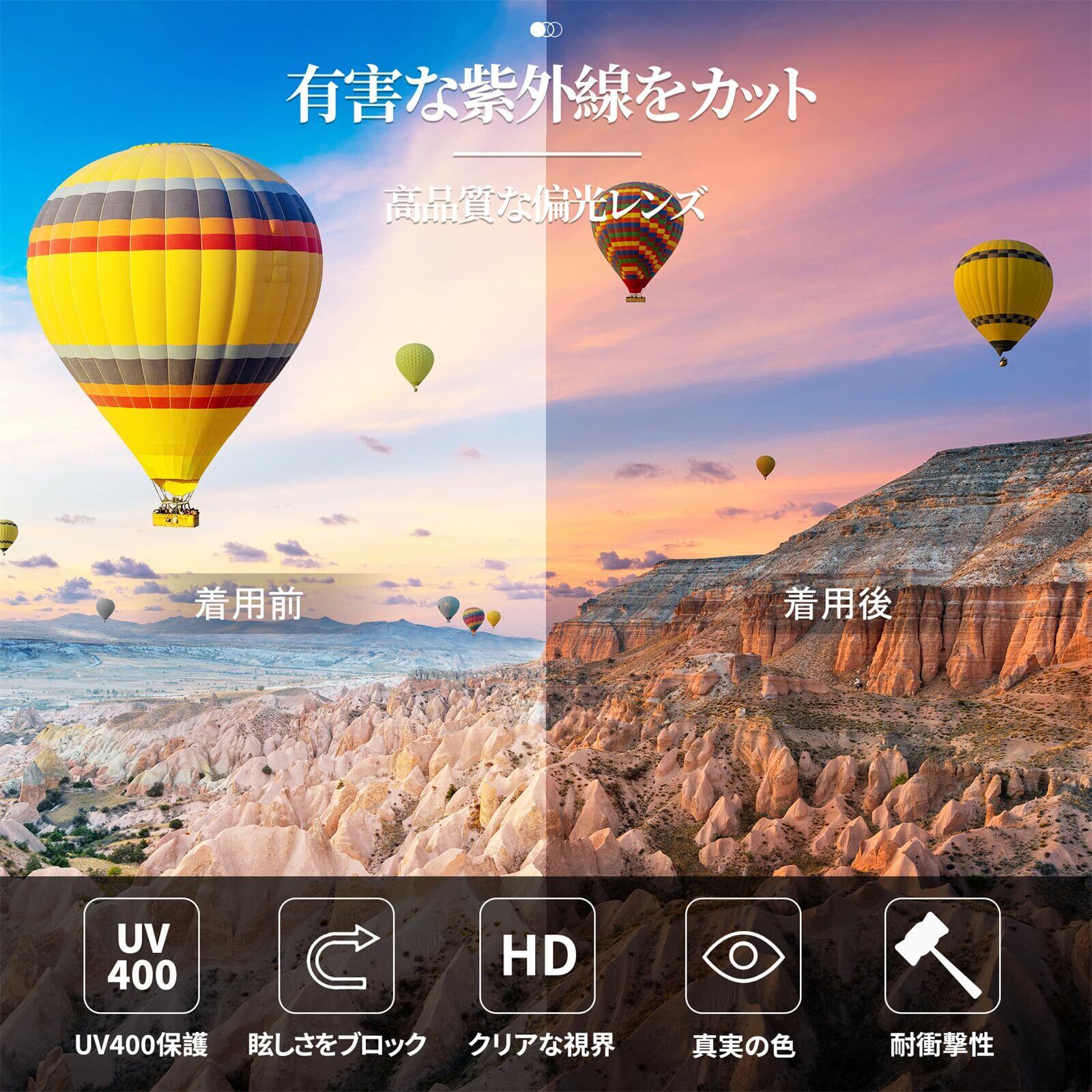 【高品質偏光レンズを採用 】光の反射やぎらつきを極限までカットしながら視界をくっきり見せる多層構造レンズを採用。海や川などの反射光をカットするから、ぎらつきがなくなり、釣りにも最適。
