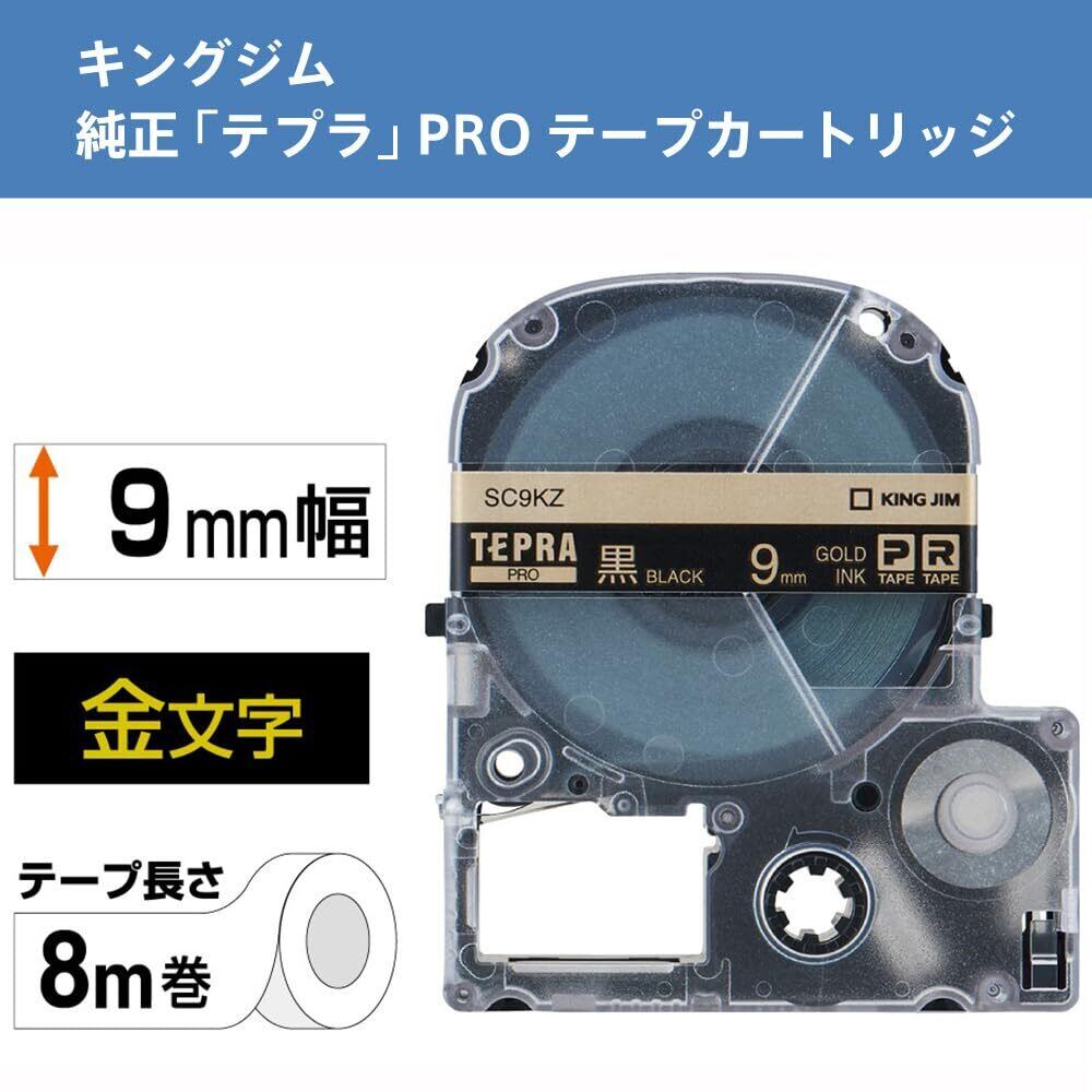 キングジム テープカートリッジ テプラPRO 9mm SC9KZ 黒 金文字