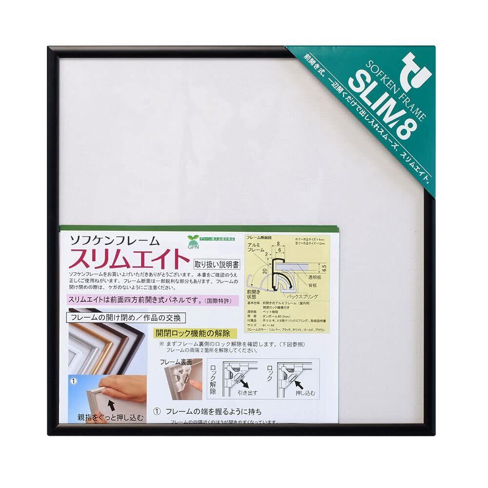 ソフケン(Sofken) アルミ額縁 スリムエイト 250X250 ブラック 【手ぬぐい額、ハンカチ額、正方形額、軽量で作品セットが簡単なポスターフレーム】