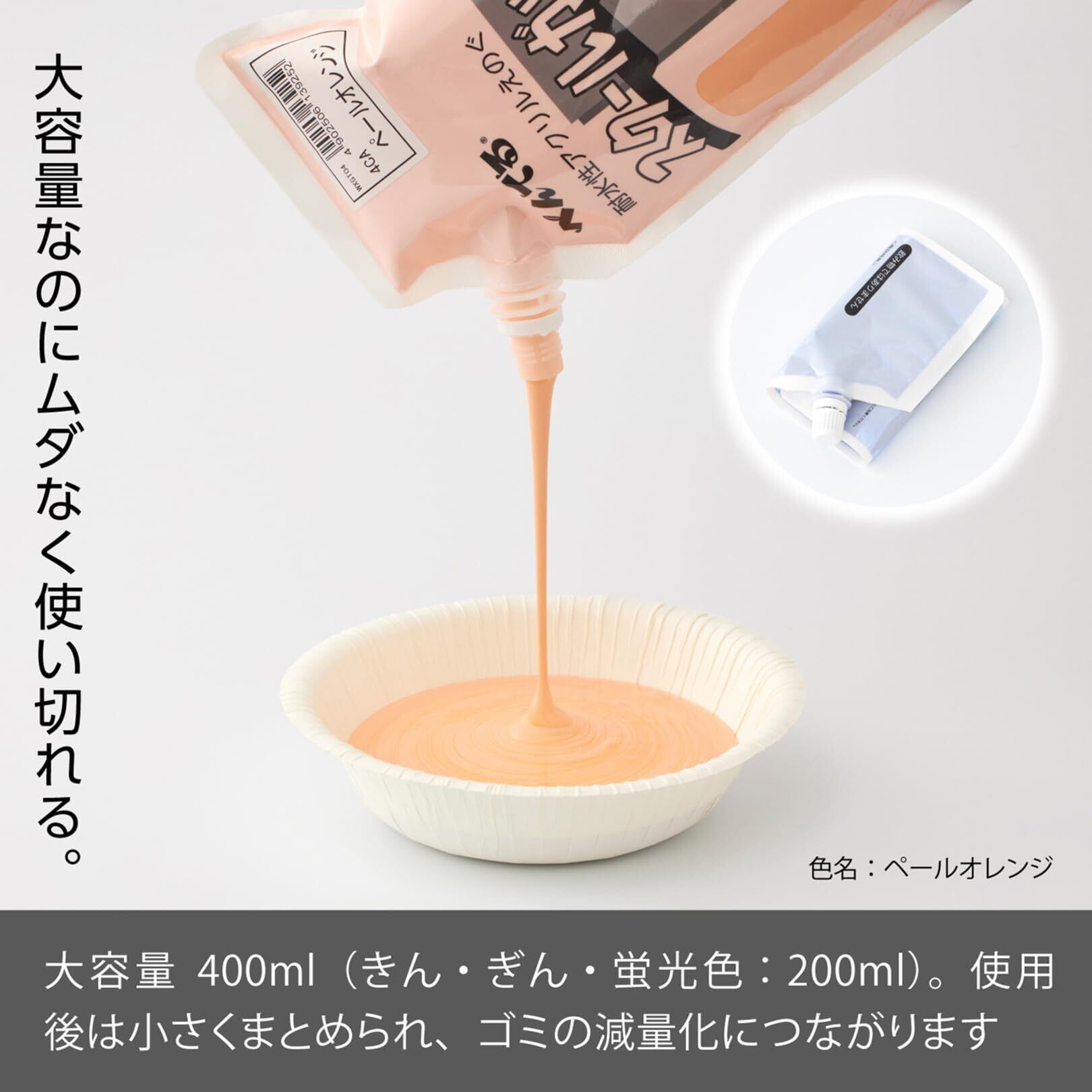 ぺんてるが誇る高品質な顔料を使用しており、色の仕上がりは美しく、耐久性にも優れています。ペールオレンジは、温かくやさしい印象を与え、学校や家庭でのアート活動にぴったりの色合いです。