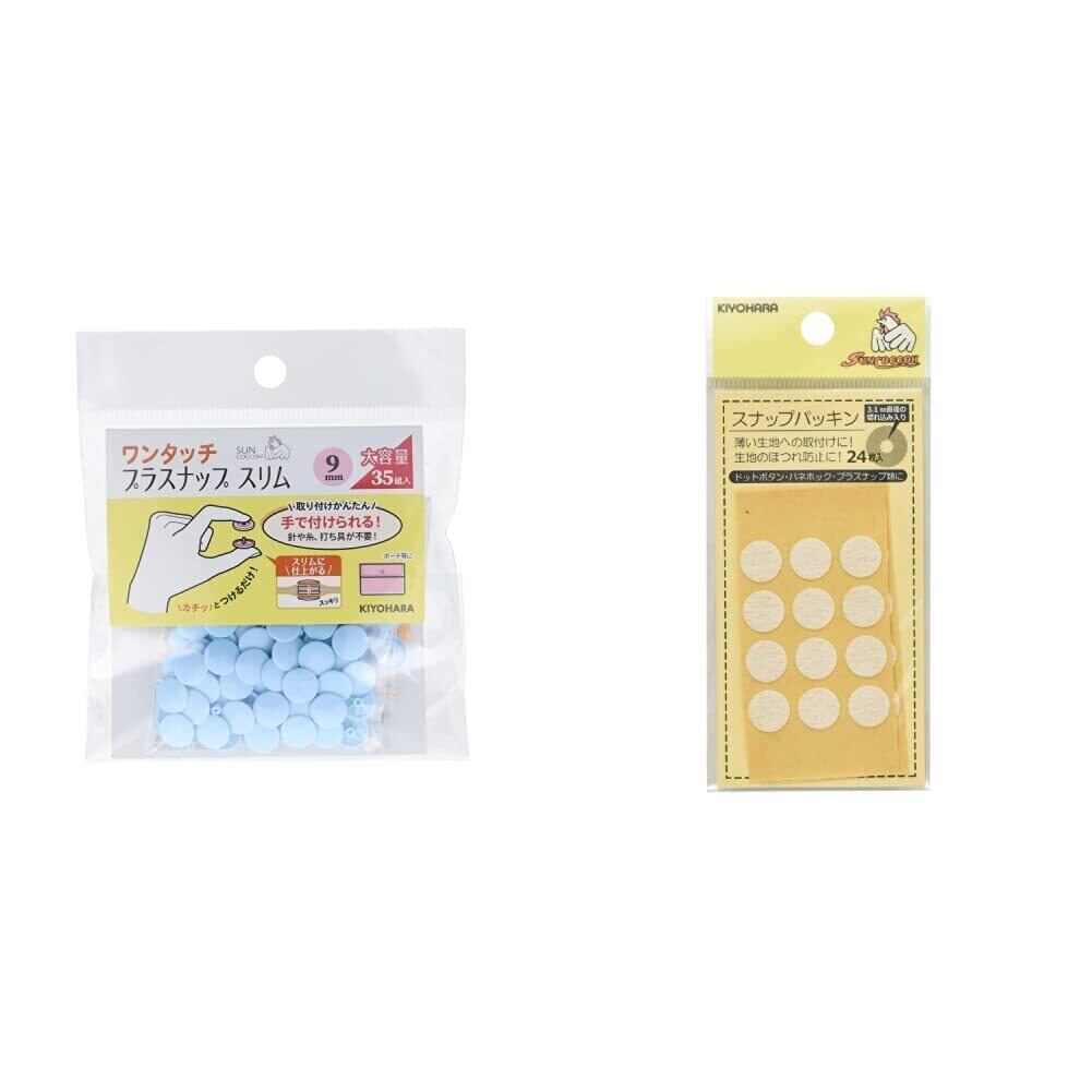 セット内容:KIYOHARA サンコッコー ワンタッチプラスナップ スリム 大容量 35組入 直径9mm ベビーブルー SUN17-105 ・ KIYOHARA サンコッコー スナップパッキン 24枚入 外径10mm SUN18-01