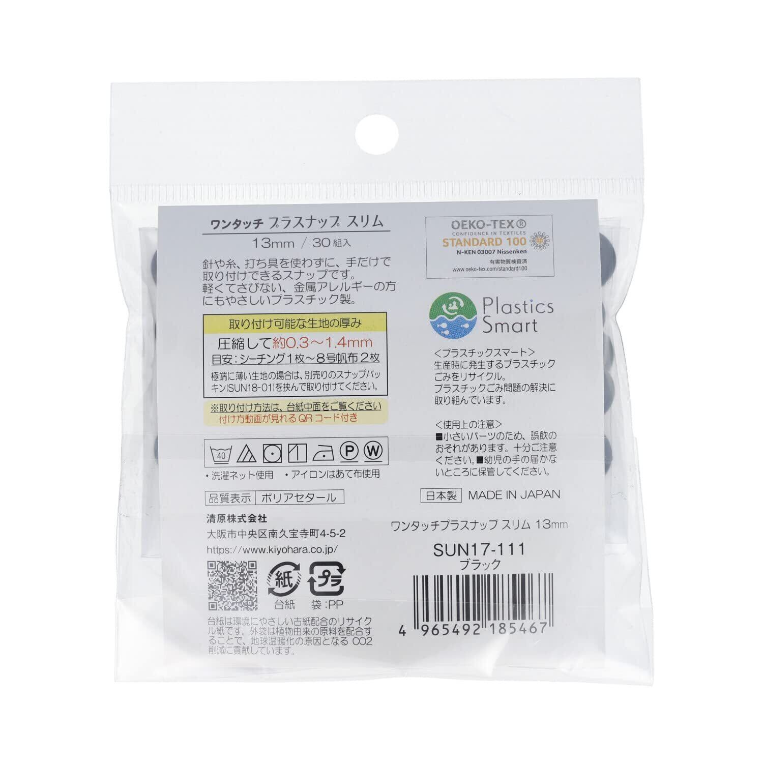KIYOHARA サンコッコー ワンタッチプラスナップ スリム 大容量 30組入 直径13mm ブラック SUN17-111