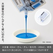 「『ぺんてる 絵の具 スクールガッシュ』は、鮮やかな発色と高い耐水性を兼ね備えた、アート制作に最適な絵の具です!蛍光あおのこの色は、視認性が高く、作品にインパクトを与えることができます。」