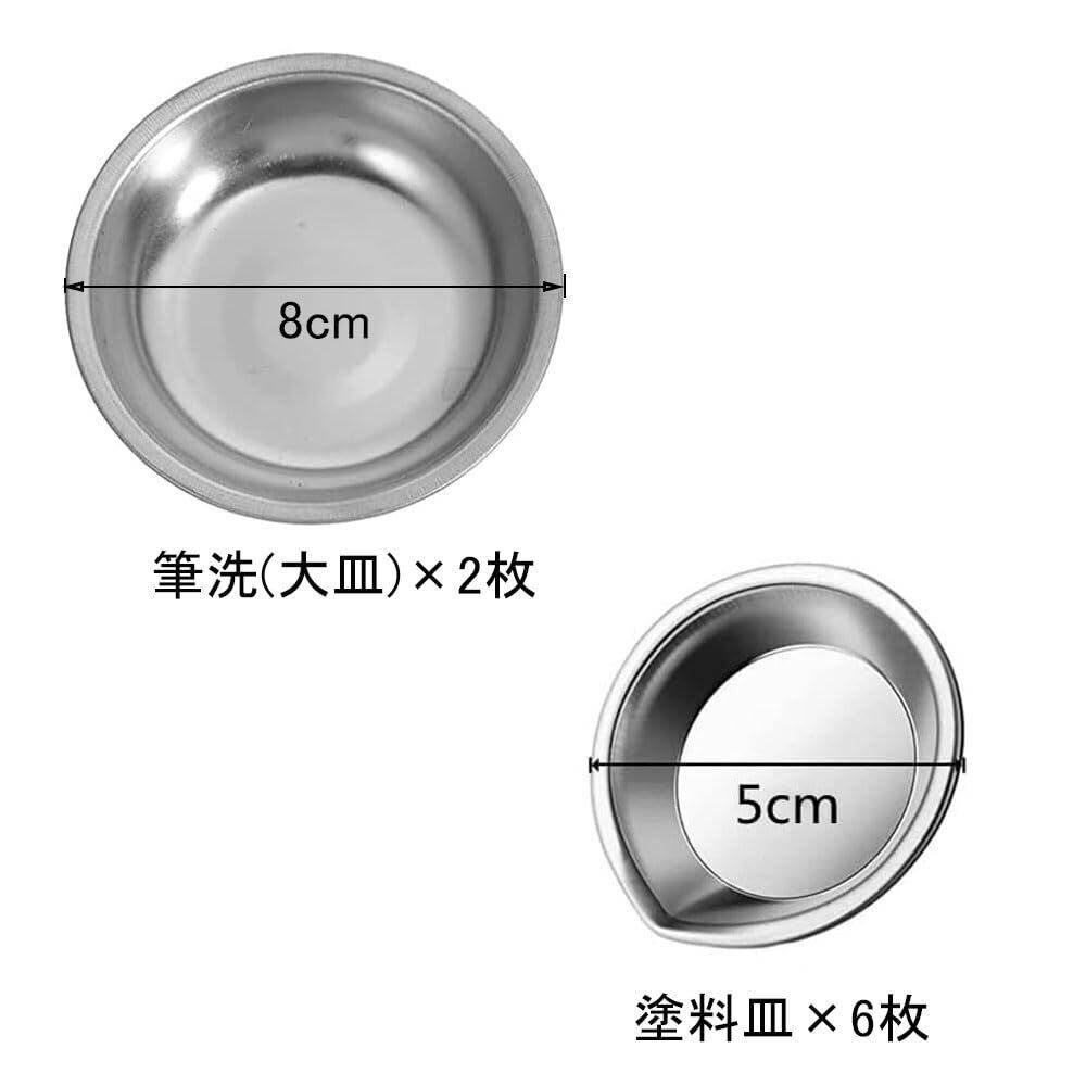 プラモデル 塗装セット:ステンレス製の塗料皿×6枚,ステンレス製筆洗(大皿)×2枚,合計8点セット,お得です。