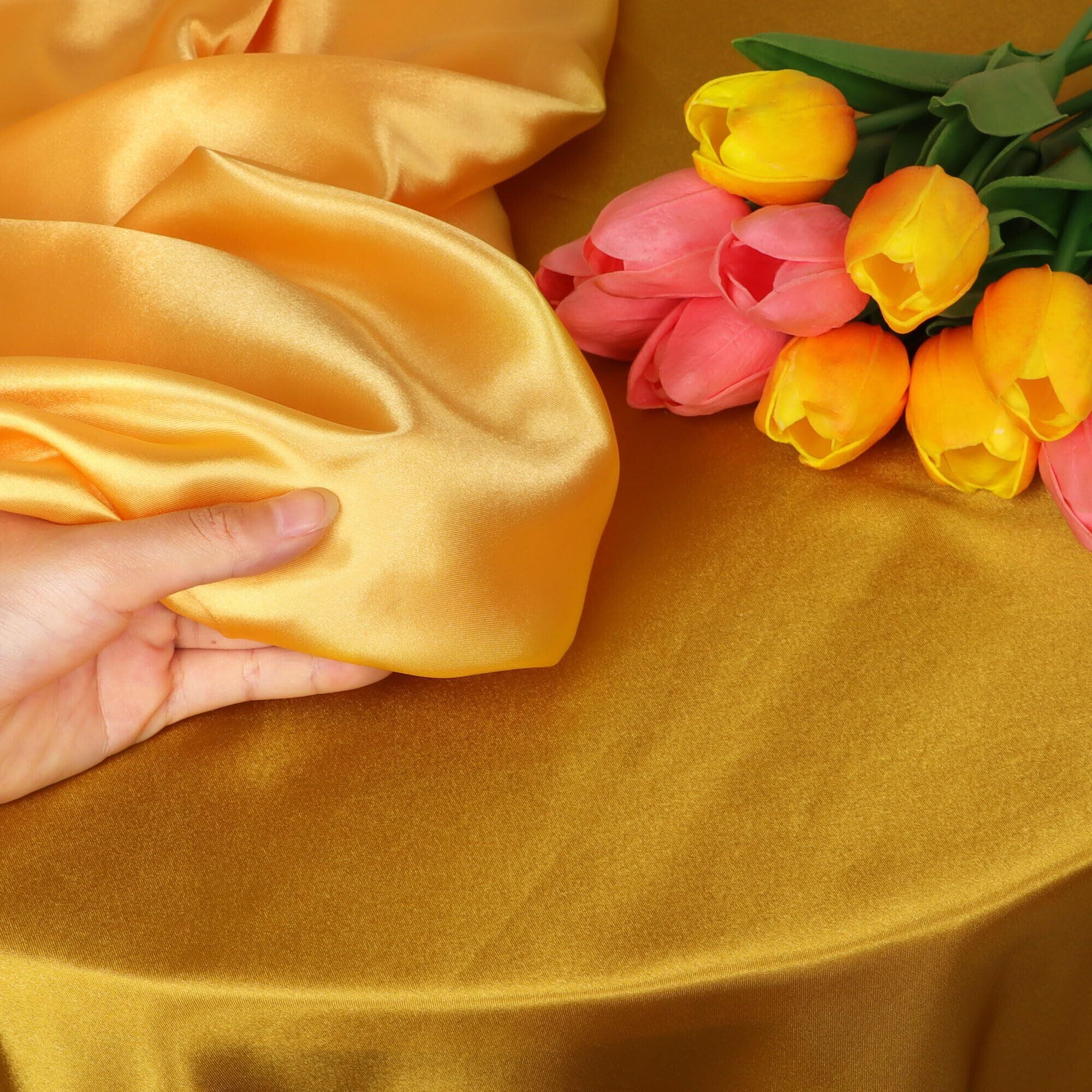 【在庫処分】DERAYEE シルク風 サテン生地 織物 生地 輝き 約142cm×100cmカット 肌触りの良い 選べる20色 手作り DIY 裁縫 手芸 贈り物 (199ライトゴールド 142x100cm)