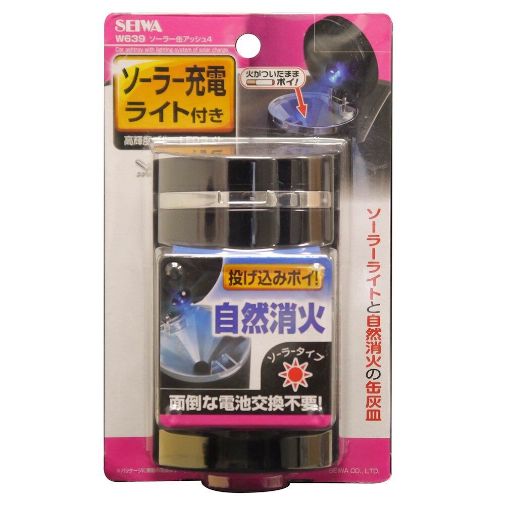 セイワ(SEIWA) 車内用品 灰皿 ソーラー缶アッシュ4 ドリンクホルダー型 ブラック LED付き W639