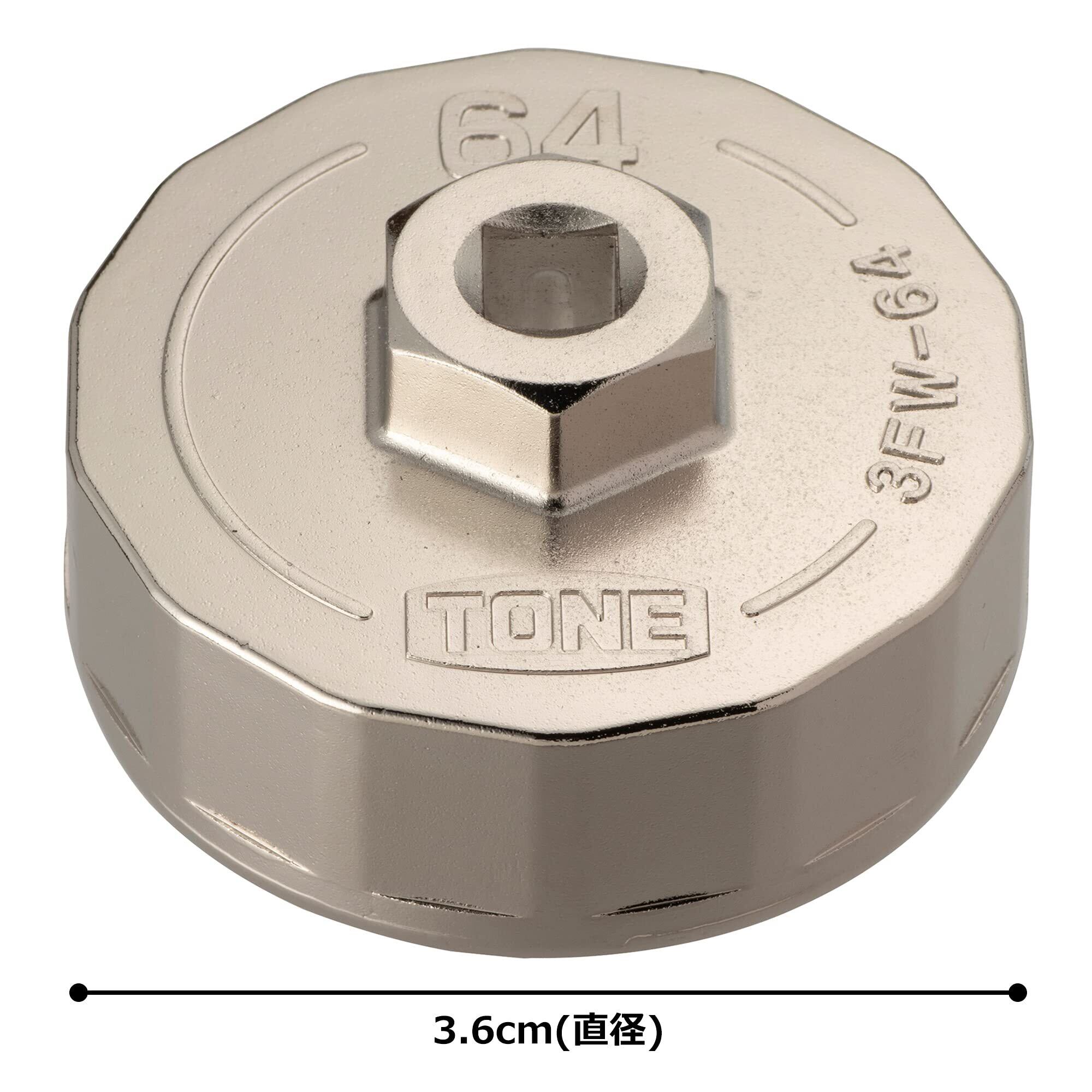 【在庫セール】トネ(TONE) オイルフィルターレンチ(カップ形) 3FW-64 差込角9.5mm(3/8) φ64