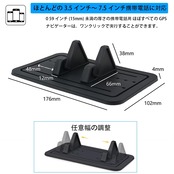 「特別設計のシリコン素材が、スマートフォンをしっかりと保持。運転中の激しい動きにも耐えられる優れた滑り止め効果を発揮します!」