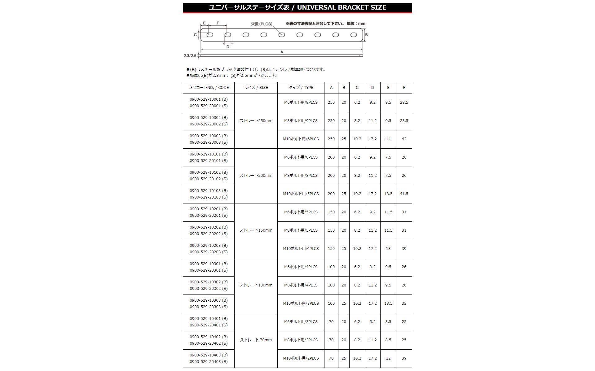 タイプ : ストレート250mm(2.3mm厚) M8ボルト用9PLCS