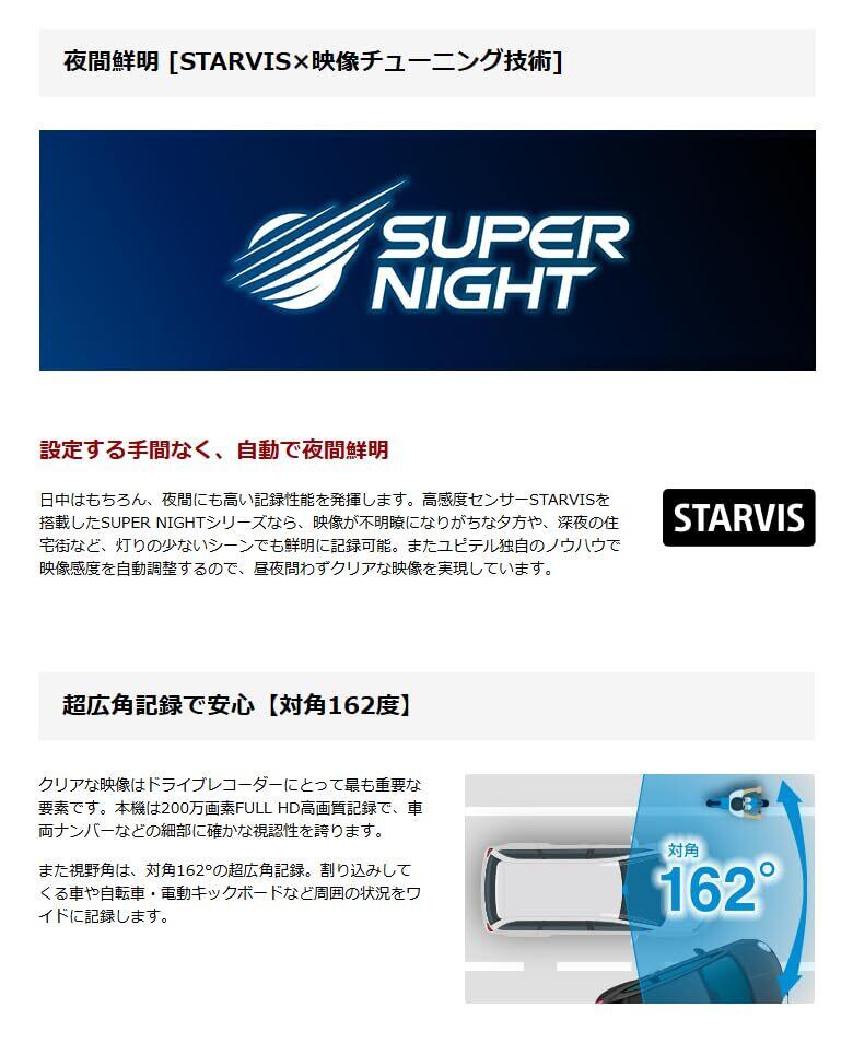 「『ユピテル ドライブレコーダー SN-ST3400P』は、高画質で安心してご使用いただける最新モデルのドライブレコーダーです!200万画素のFULL HD映像に加え、STARVIS & HDR技術により、夜間でも鮮明な映像を記録します。GPS機能も搭載しており、位置情報も同時に記録することができます。」