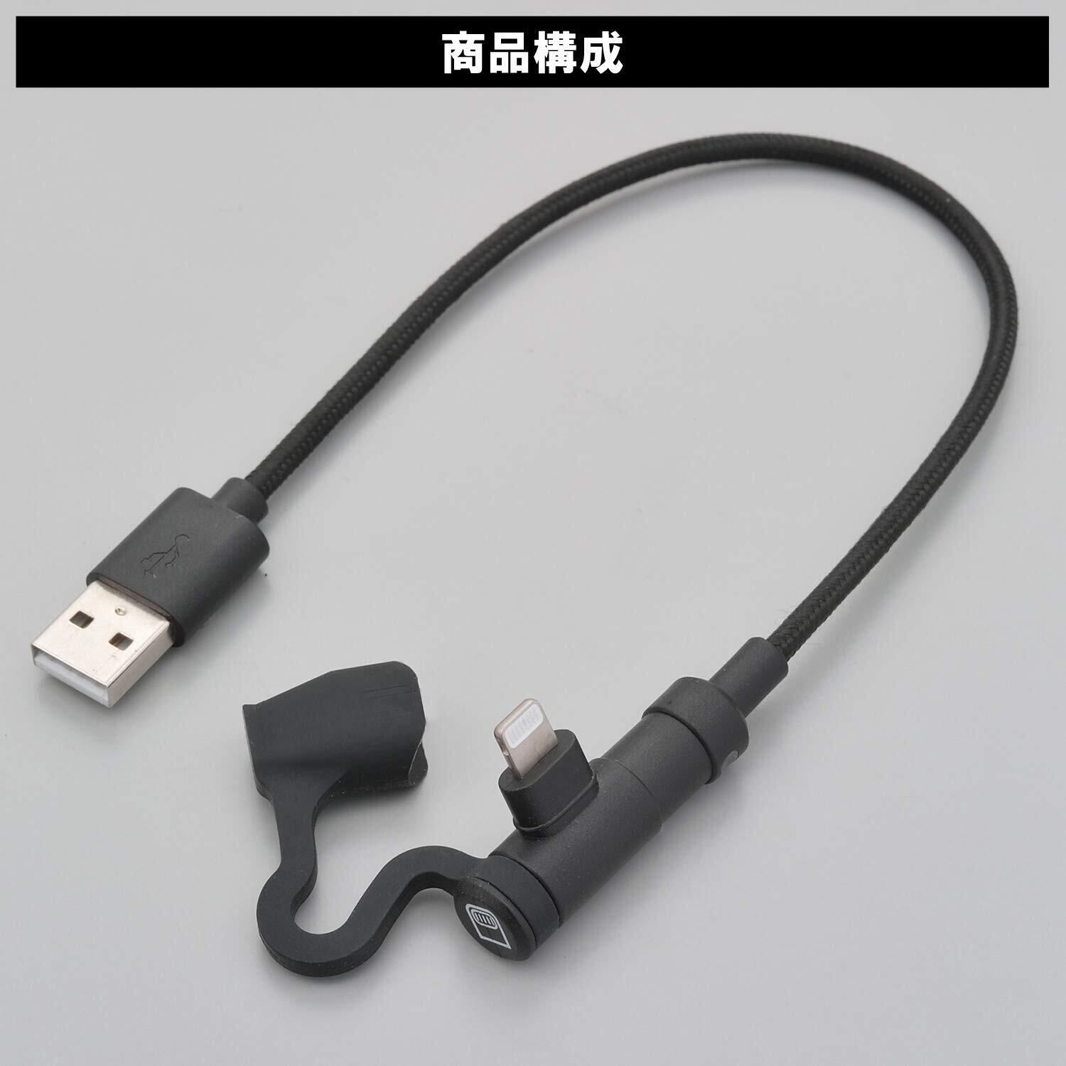 デイトナ(Daytona) バイク 充電ケーブル 20cm USB-A & ライトニング iPhone対応 MFi認証 L字コネクター 15610