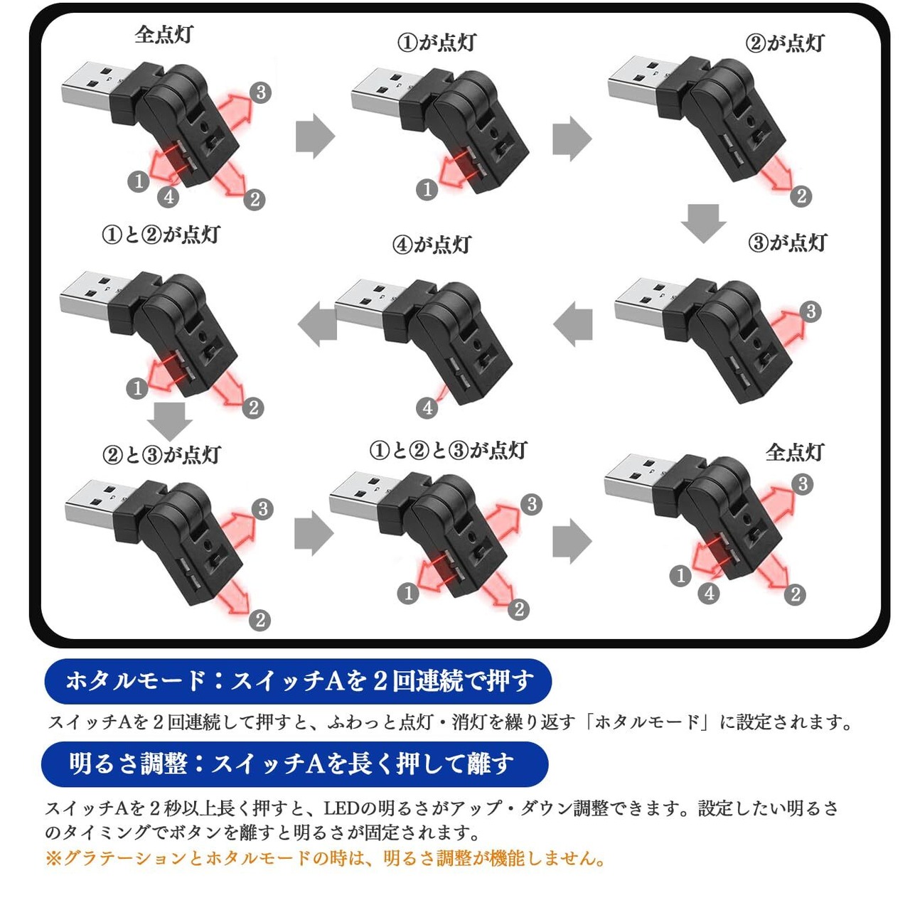Juckier USBライト 車内用 LED 照射方向切替/180°首振り/自動点灯/RGB8色 メモリー機能搭載 アンビエントライト 小型軽量 簡単取付 USB給電 車アクセサリー USB-A 1個入り