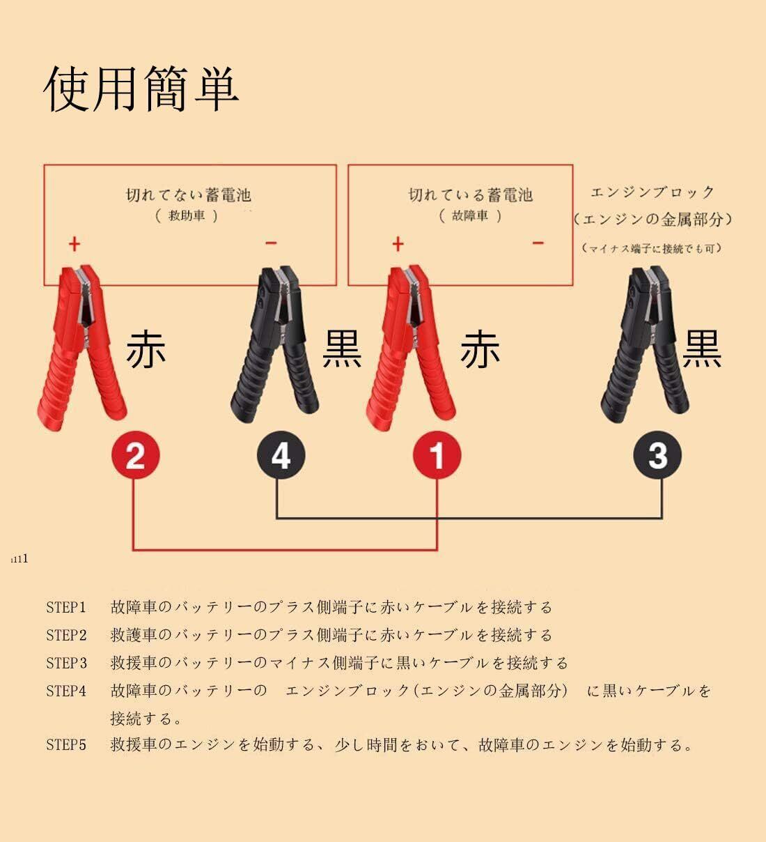 極太6メートル長く3200AMPのケーブル、35²芯線、12V、24V軽自動車大型トラックまで基本的に全ての車に対応。短時間で効率良く作業できます。
