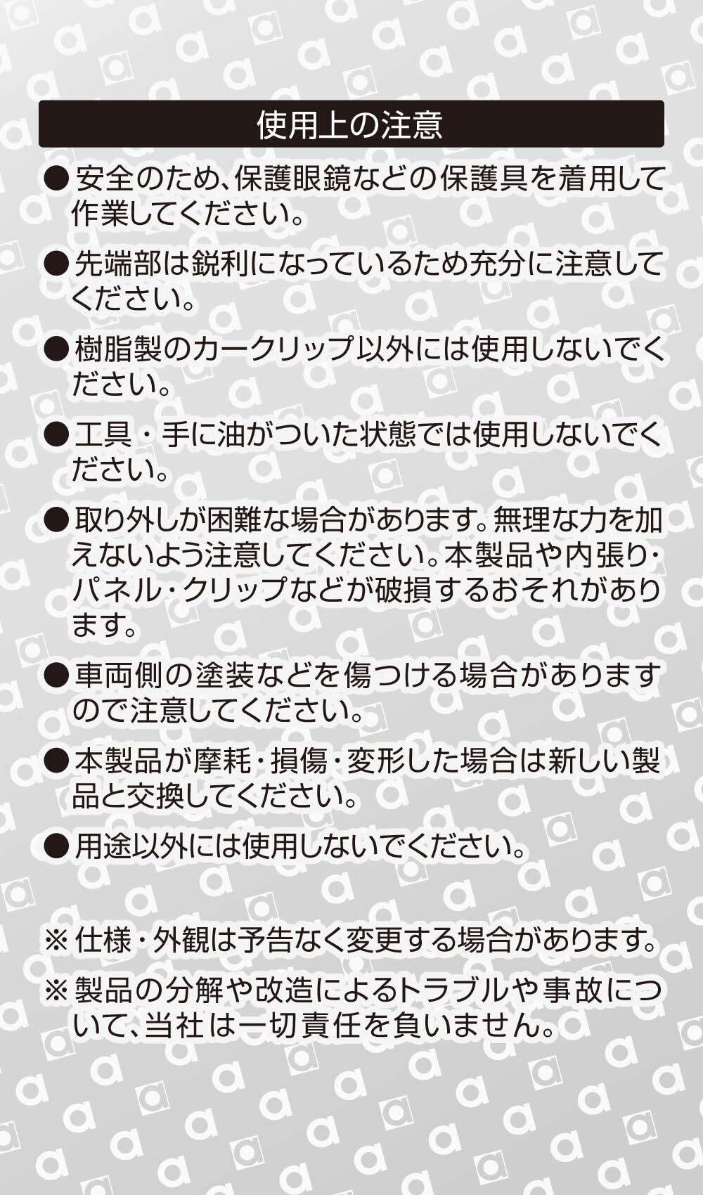 「内装パーツだけでなく、幅広い用途で使えるので、お車のメンテナンス以外にも役立ちます。様々なクリップや留め具を取り外す際に大活躍!」