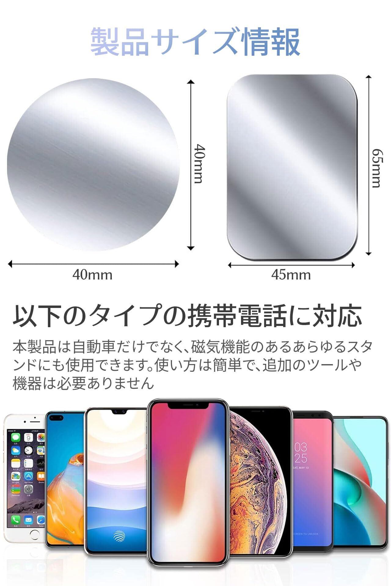 ️【商品詳細】4点セット。マグネットタイプの車載ホルダーに適合するメタルプレートです。形状:丸型と角型。カラー:ブラック、シルバー、ピンク。サイズ:丸型のメタルプレート:直径40mm。角型メタルプレート:45mm*65mm。具体的な組み合わせは写真と注文ボタンをご覧ください。