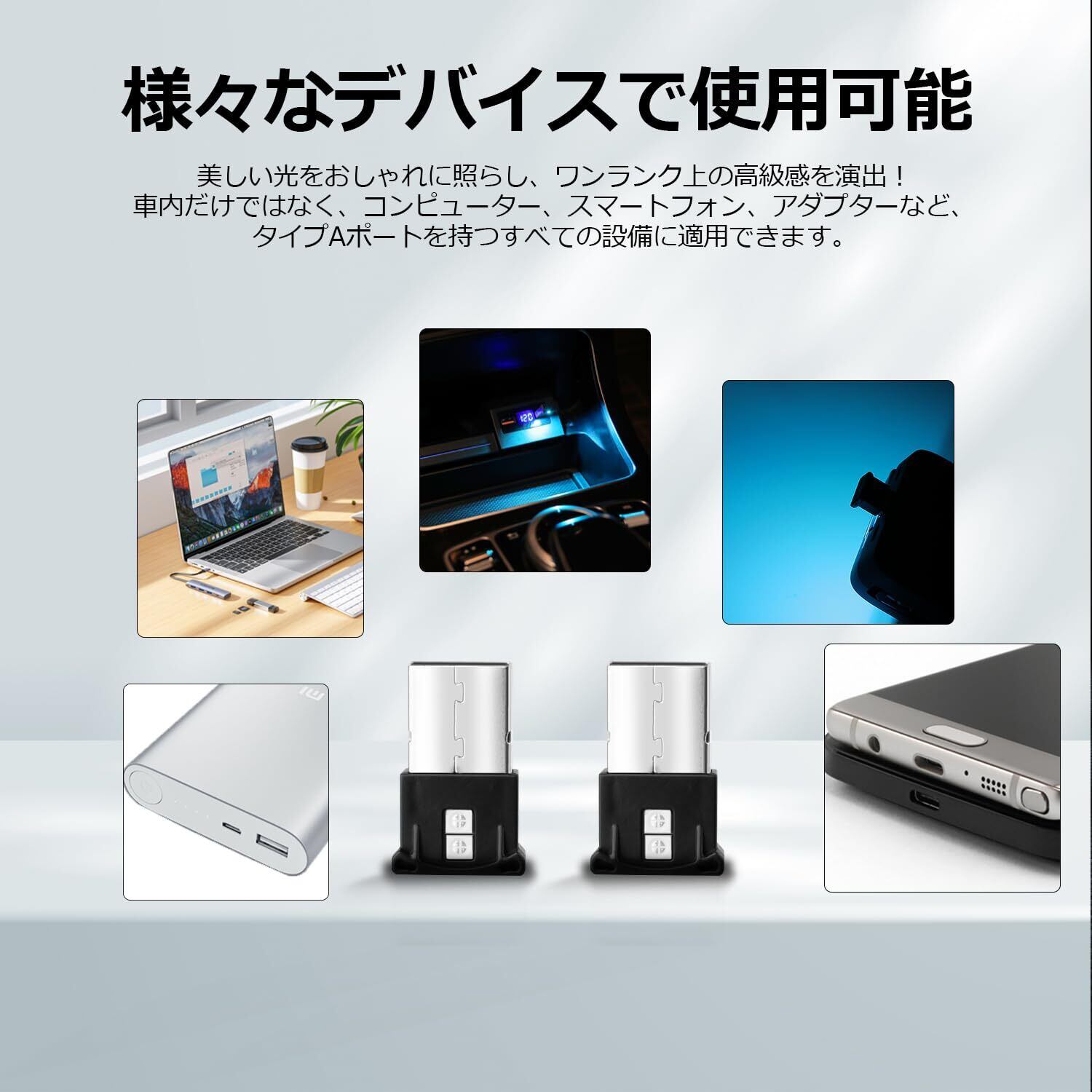 1.【Type-A usbライト】車内にあるUSB ポートに接続するだけで、暗くなると自動的に点灯するアンビエントライトです。タイプAポートを持つすべての車両や設備に適用できる広範な用途を備えています。「セット内容」:USB LEDライト Type-A×2p。