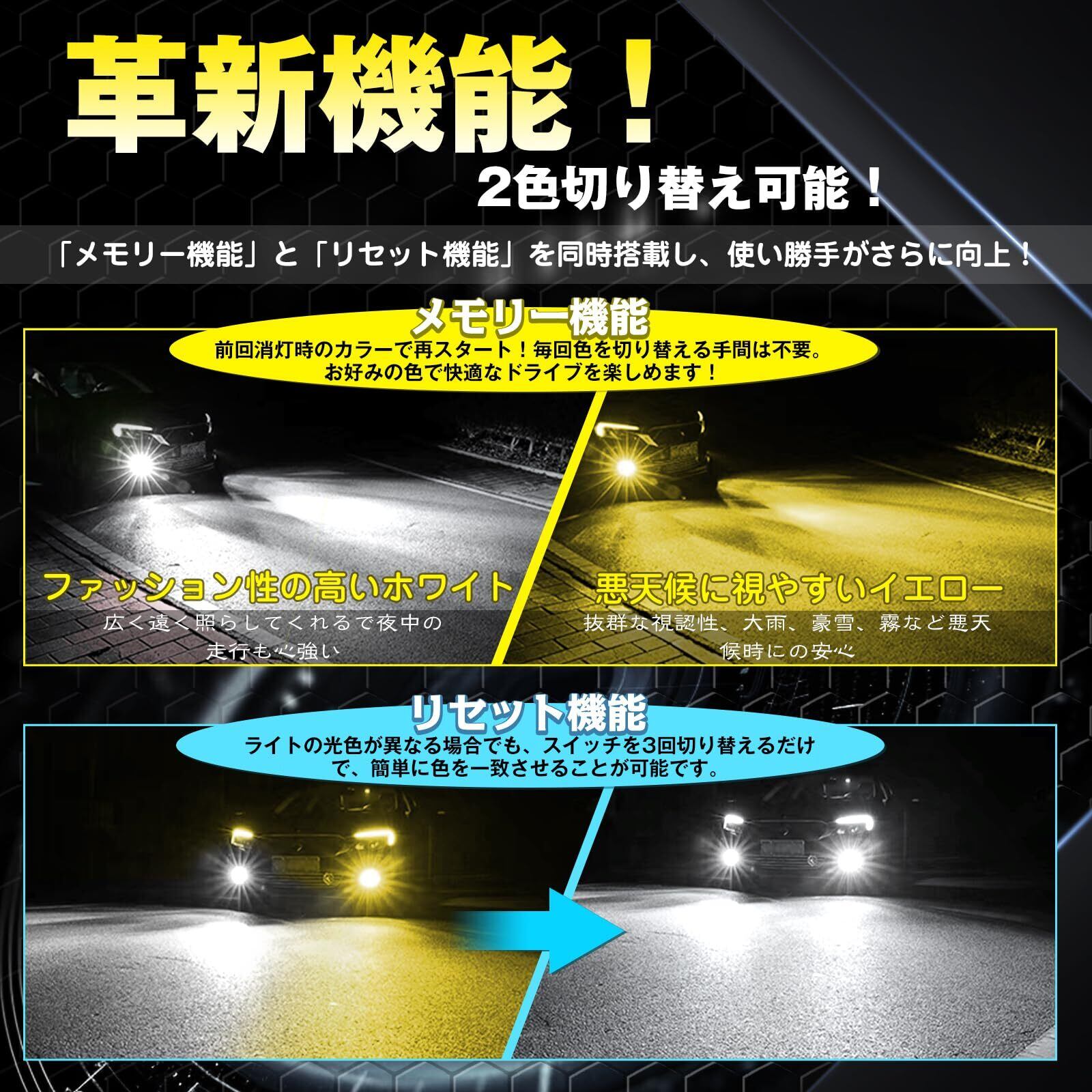 【シーンに合わせて瞬時に切替!2色切り替えフォグランプ&メモリー機能】このhb4 led フォグランプ 2色切り替えは、ホワイト(6500K)とイエロー(3000K)の2色切替が可能!晴れの日は視認性抜群のホワイト、雨・霧・雪の日は視界を確保しやすいイエローを選べます。さらに、メモリー機能付きで、前回使用した色を自動記憶。左右の色がズレてしまった場合でも、リセット機能で簡単に色を揃えることができます。hb4 led フォグランプ 爆光をお探しの方にもピッタリです!