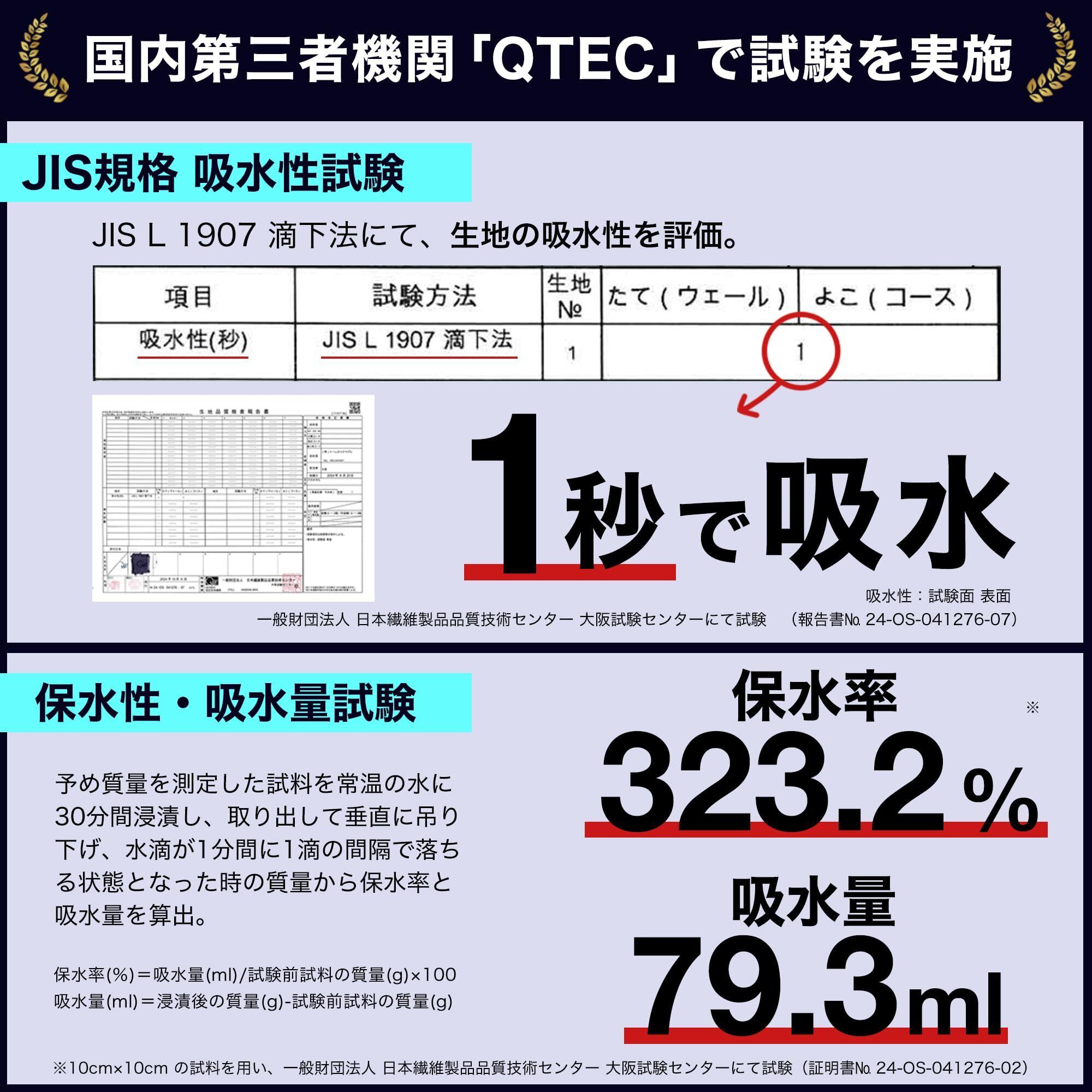 「このタオルは超吸水性を兼ね備えており、洗車後の水滴を一気に拭き取ります。大判サイズ(90cm×60cm)なので、広い面積も楽にカバーでき、手間を省きます!」