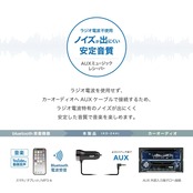 カーオーディオのAUX外部入力端子へケーブル接続、FM電波を使わないからノイズが出にくい、安定&高音質再生