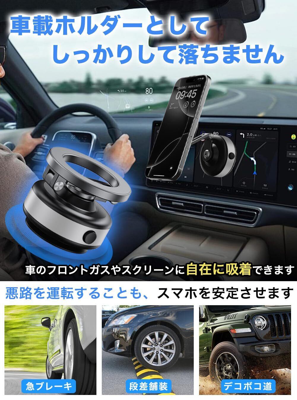 【革新的な設計!磁力と真空吸着の車載スマホホルダー】磁力と真空吸盤を組み合わせた画期的なスマホホルダーを開発しました。このホルダーは「磁力不足」「脱落しやすい」「粘着力不足」「取り付けの難しさ」などの従来の問題を解決しています。独自のS/N双極交替磁場設計により、スマホの操作や通信に影響を与えることもありません。電動真空吸盤は従来のものに比べて吸着力は30%向上。急ブレーキやデコボコ道でもしっかり固定できます。