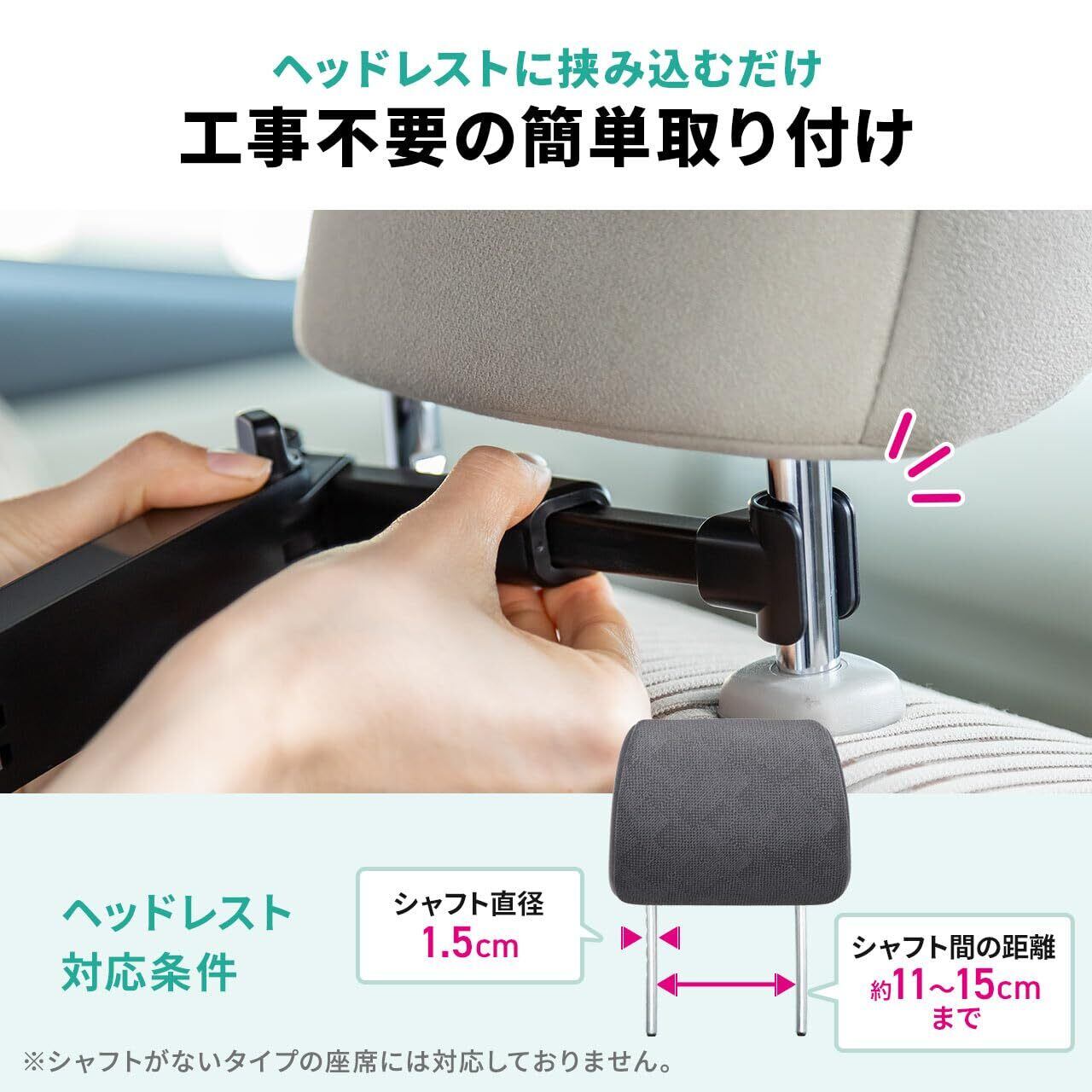 後部座席 で使用できる ヘッドレスト 取り付け タイプの 車載ホルダー です。
