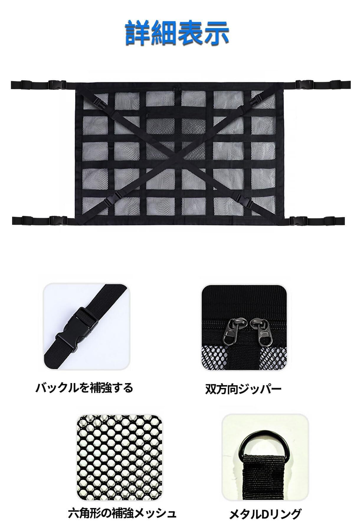 「『CZEAR 車 ネット 天井収納』は、車内のスペースを有効活用するために設計された便利な収納ネットです!大容量の収納力を持ち、車中泊や長距離ドライブ時にも安心して荷物を使えます。」