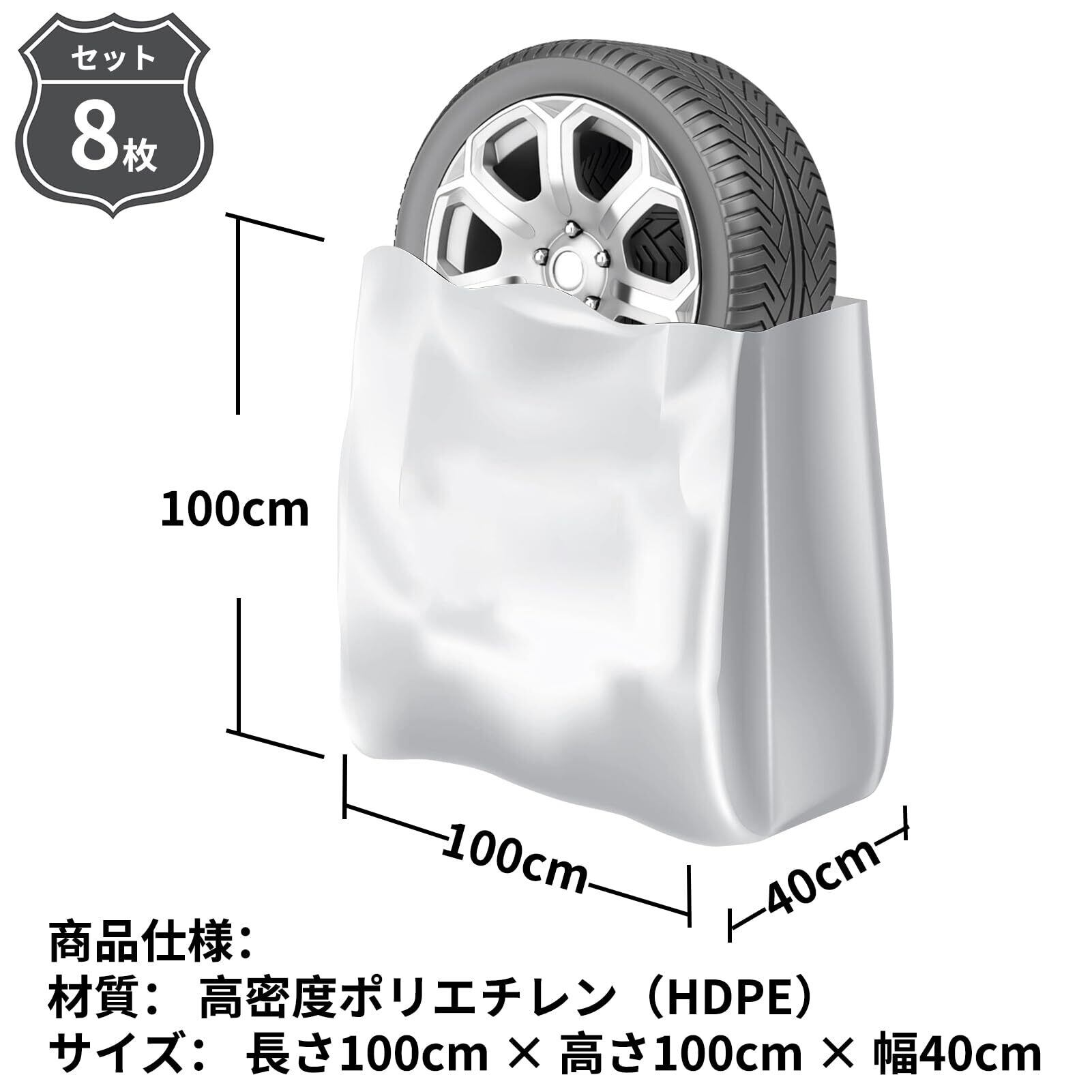 SUPTEMPO タイヤ袋 8枚入 厚手 タイヤカバー 屋外 防水 2025 タイヤ保管 ビニール袋 タイヤ 収納 袋 タイヤカバー 0.05MM 繰り返し使用 軽自動車 SUV - 8枚セット
