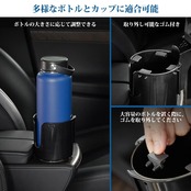 「このドリンクホルダーは、飲み物を保持するだけでなく、スマートフォンやカードの収納も可能です。ドライブ中に必要なアイテムを一箇所にまとめて、スッキリとした空間を実現します!」