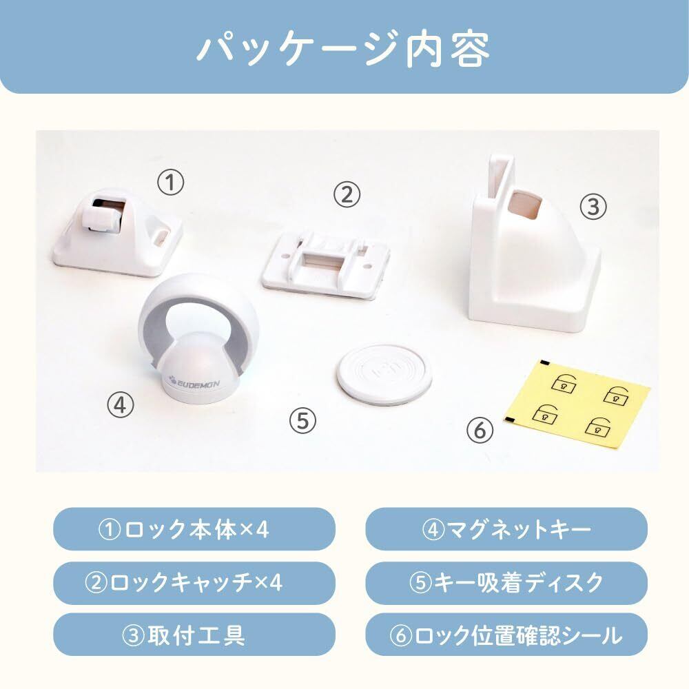 MUQQU 引き出しロック 外から見えない ベビーガード チャイルドロック 赤ちゃん マグネット 磁石 子供 鍵 3m 白/4個入