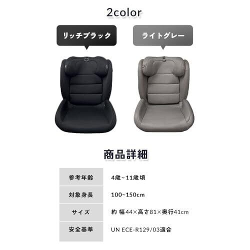 アイリスプラザ ISOFIX固定 ジュニアシート 【R129適合】 4歳から 11歳ごろまで使える (身長100~150cm対応) ライトグレー