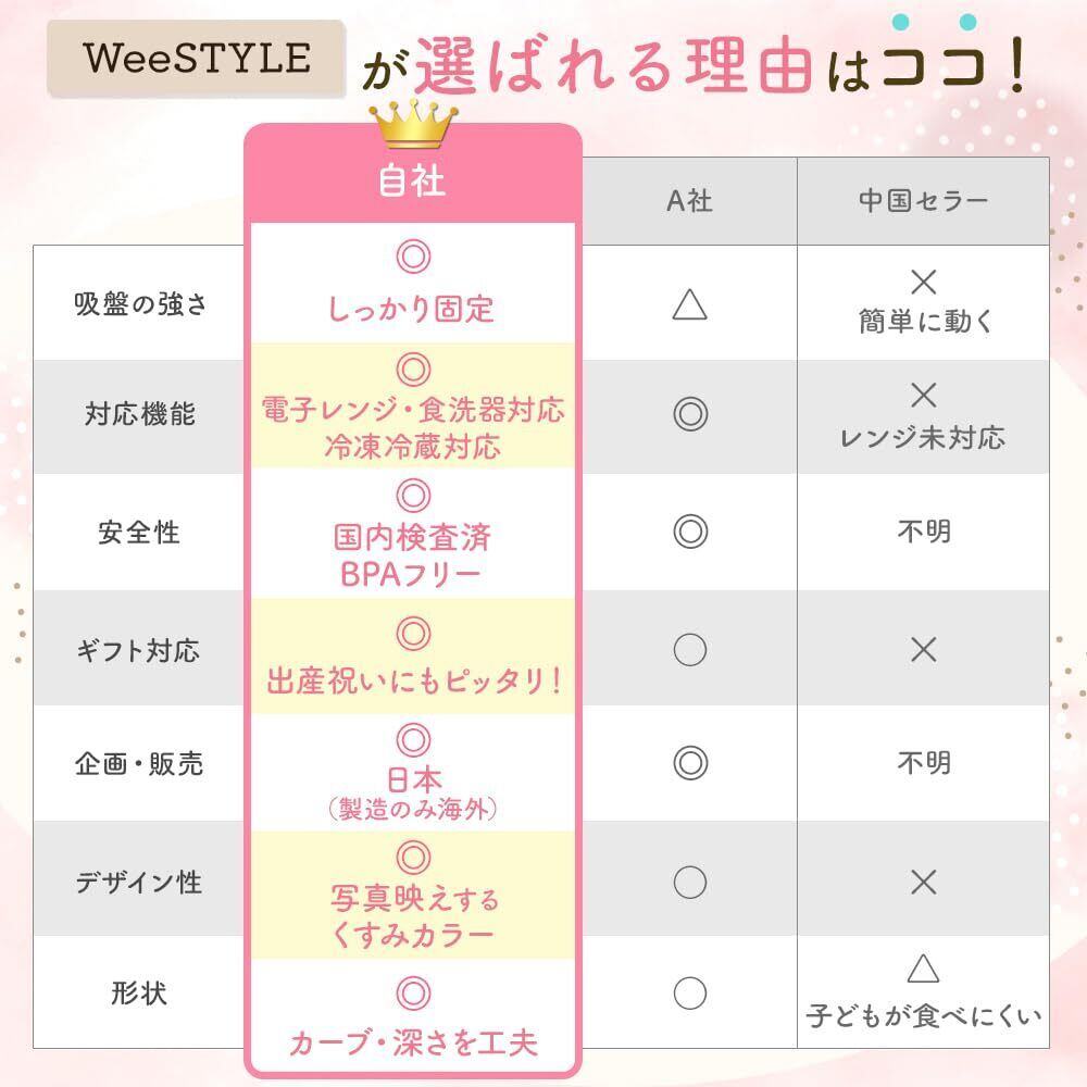 「底面に強力な吸盤が備わっているため、テーブルやトレーにしっかりと固定され、赤ちゃんがお皿をひっくり返す心配がありません。安心して自分で食事をすることができます!」