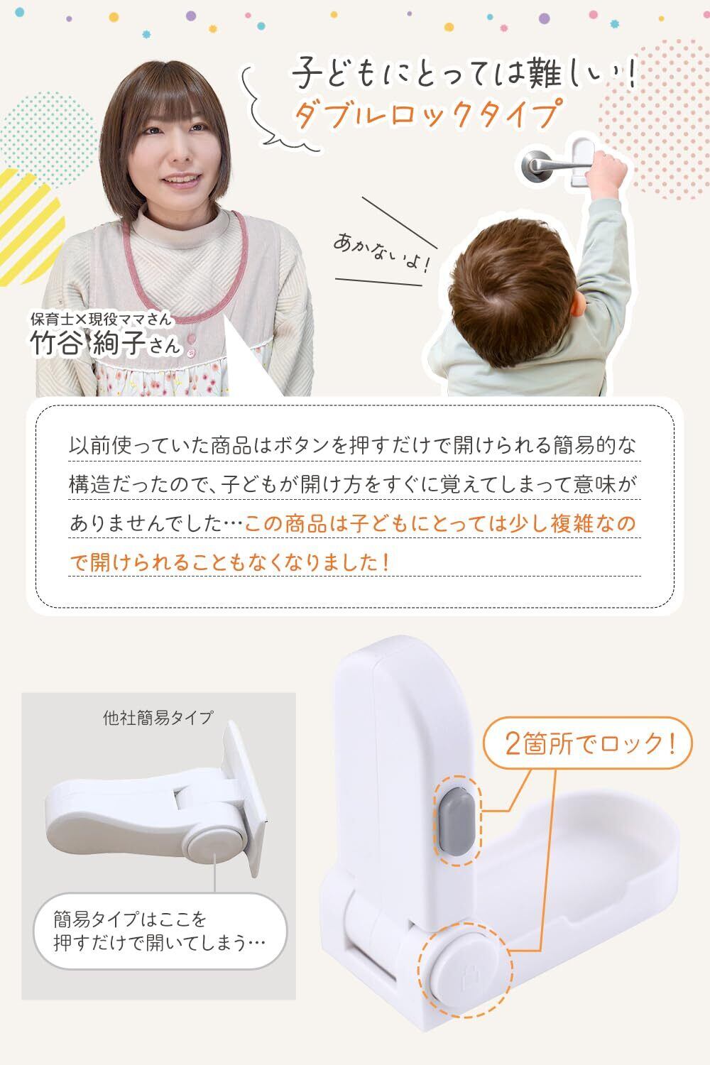 「ダブルロックタイプにより、より高い安全性を確保。大人には簡単に開けられますが、お子様の手には届かない設計となっており、安心して使用できます。特に小さなお子様のいる家庭におすすめです。」