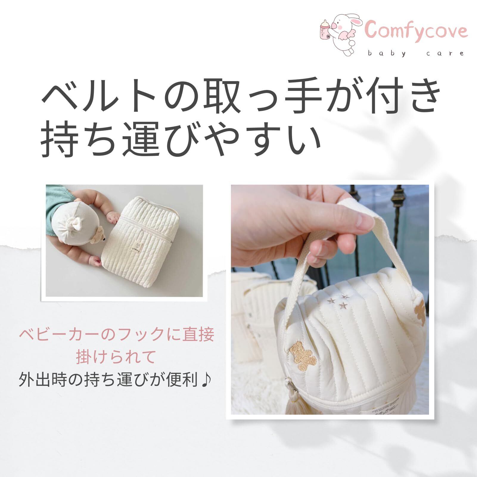 多機能でたっぷり収納:このキルティングの哺乳瓶ポーチは、見た目以上の収納力があり、使い勝手が抜群です。