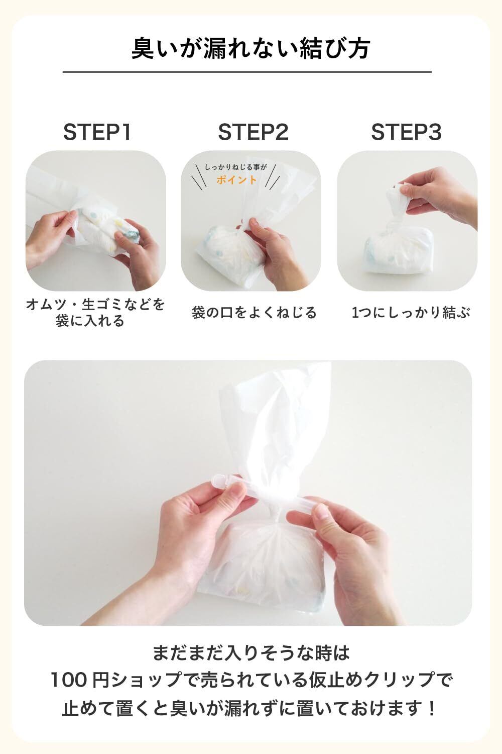 ️中身が見えにくいデザイン:乳白色に着色されたポリプロピレン素材を採用しており、袋の中身が透けにくい設計となっています。これにより、使用済みのおむつや生ゴミなどを捨てる際に、見た目の不快感を軽減します。