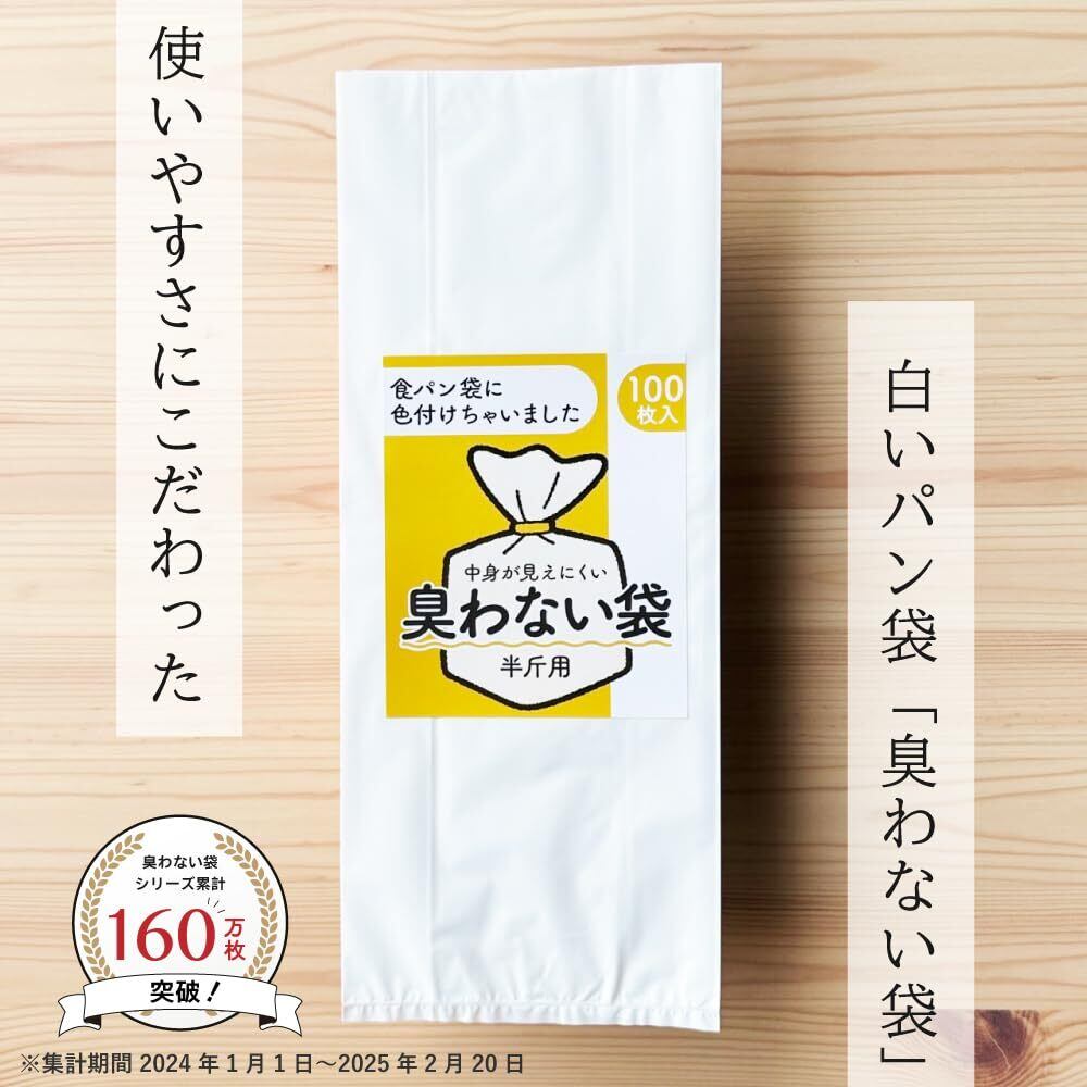 「『紙屋街 臭わない袋』は、食品や生活ゴミの保管・処理に最適な袋です! 半斤用サイズで、食パンをはじめとする様々なアイテムをしっかりと包み込み、臭いをしっかりと閉じ込めます。」