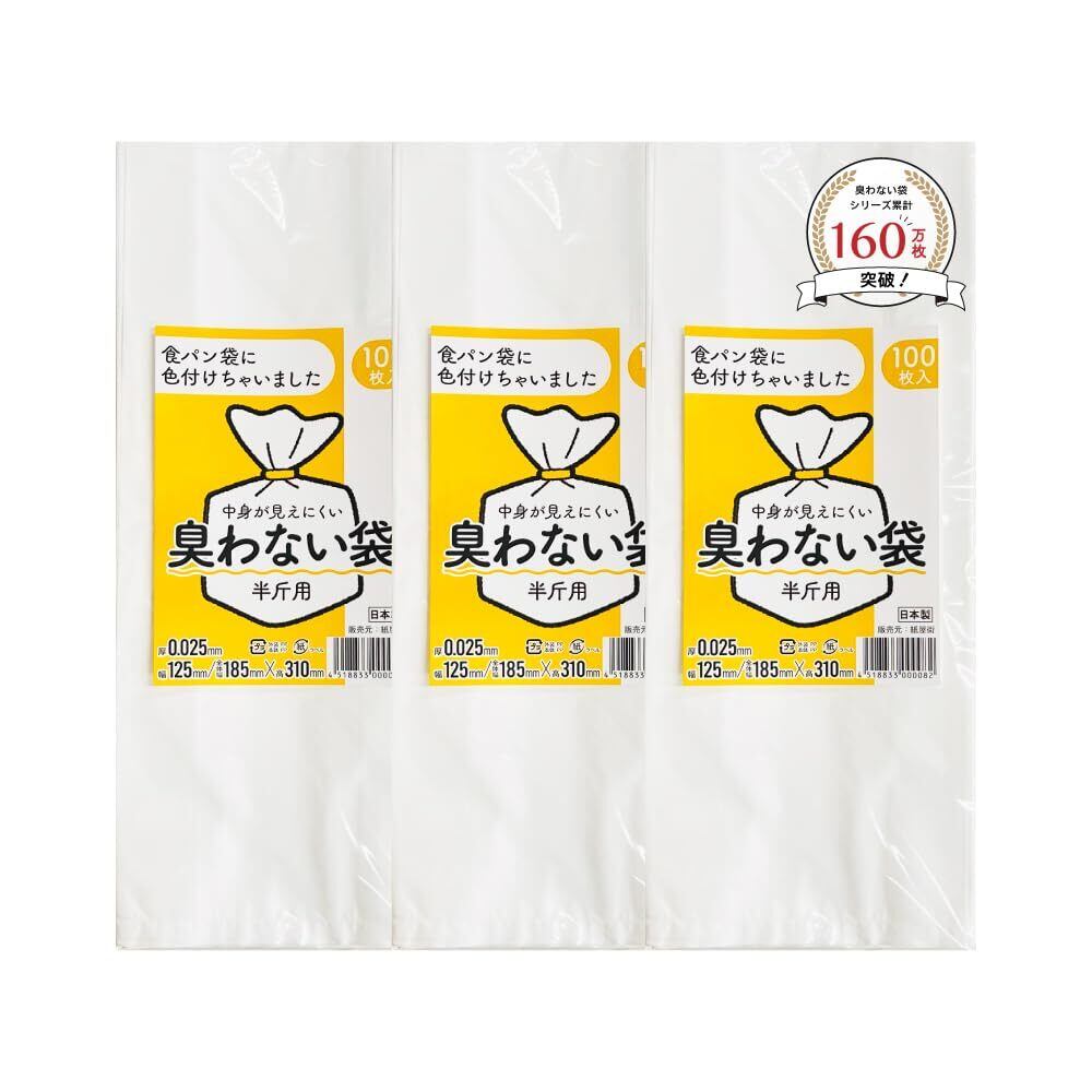 紙屋街 臭わない袋 半斤用 乳白色 300枚セット/PPパン袋 食パン袋 防臭袋 白いパン袋 おむつ袋 ゴミ袋 うんち袋 サニタリー袋 おむつ・ペットのお世話・生ゴミ などの処理に
