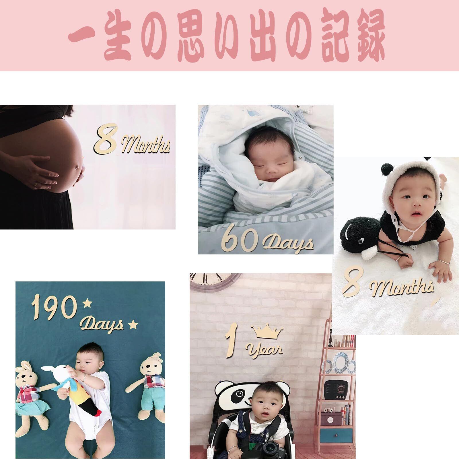 lollipopk 月齢フォト 天然木製 レターバナー マンスリーカード ニューボーンフォト 記念日フォト 成長記録 出産祝い 撮影用 寝相アート 月齢フォトグッズ ベビー用品 新生児 赤ちゃん (43枚)