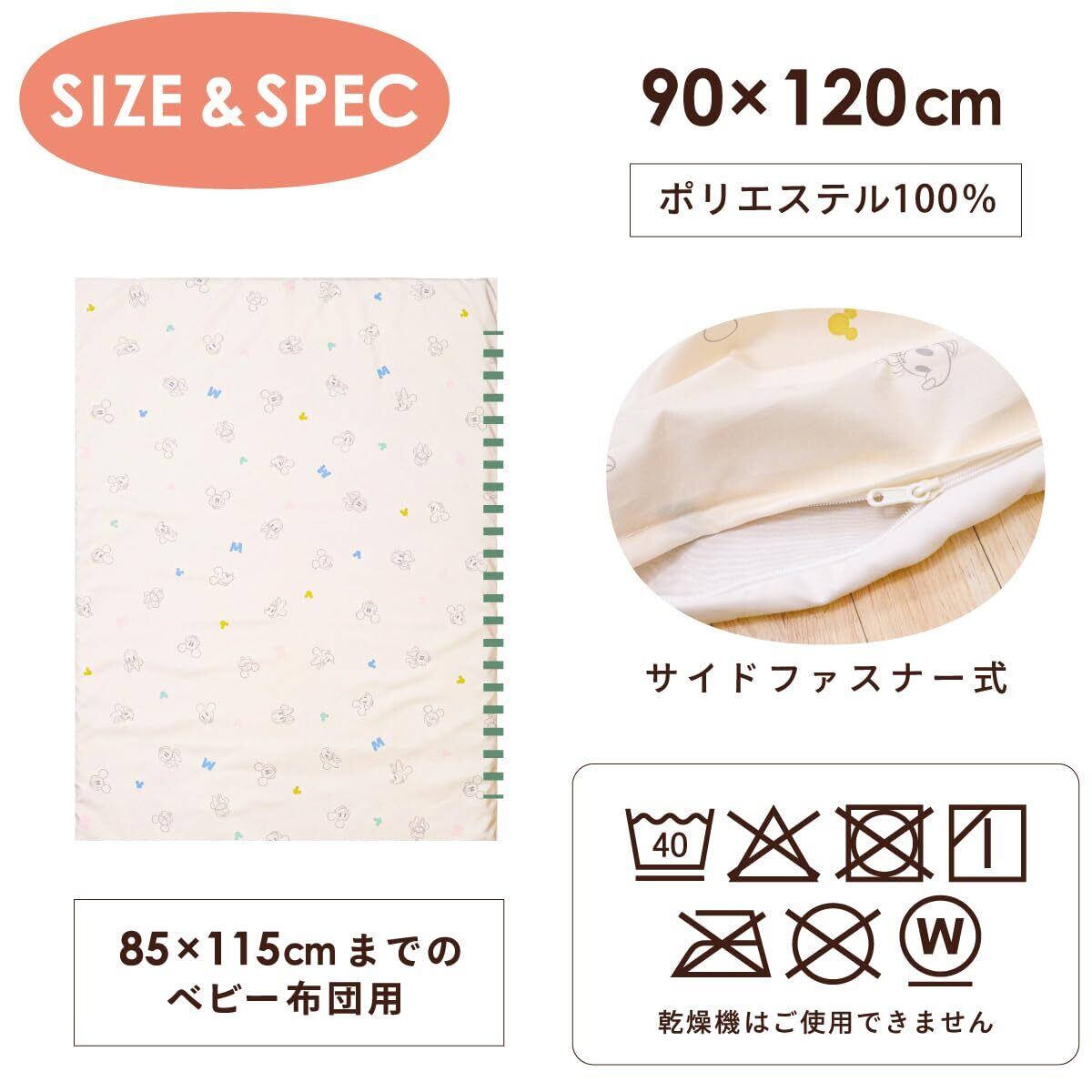 「内容:肌布団カバー90×120cm、特長:吸水加工・ピーチスキン生地・ディズニーデザイン、使用シーン:お昼寝布団カバー、赤ちゃんの快適な眠りを提供」