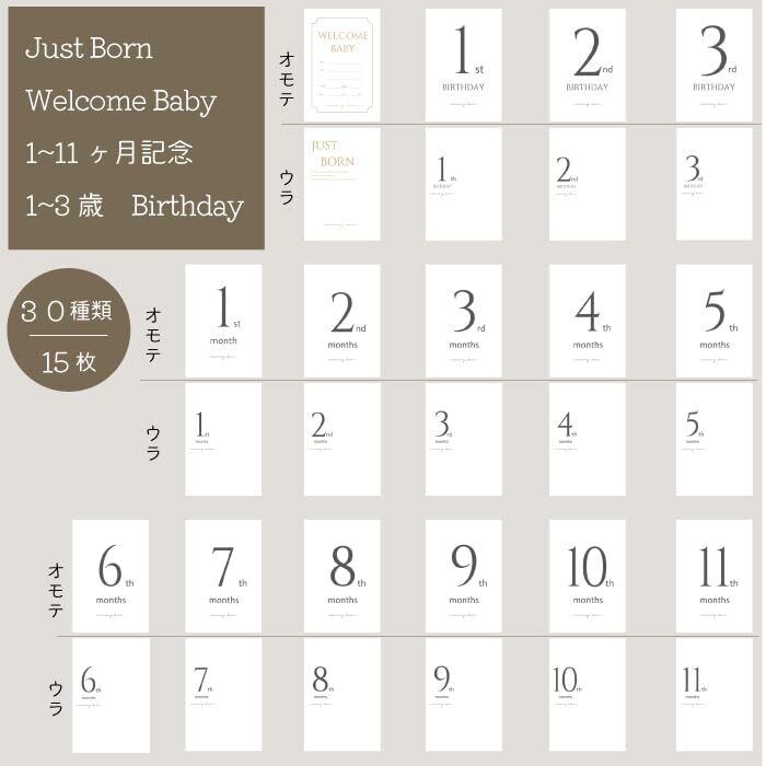 商品内容:新生児から3歳までの成長記録用マンスリーカード30種類15枚セット。クリップボード付きで思い出を美しく残せます。