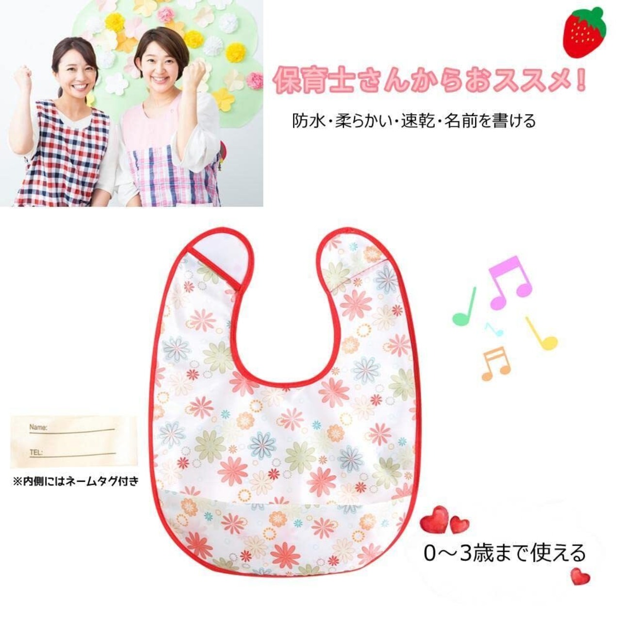 「『TSD 食事用エプロン』は、食事中のお子様をしっかりサポートする便利なアイテムです!防水仕様で、離乳食やおやつの時間も安心して楽しめます。」