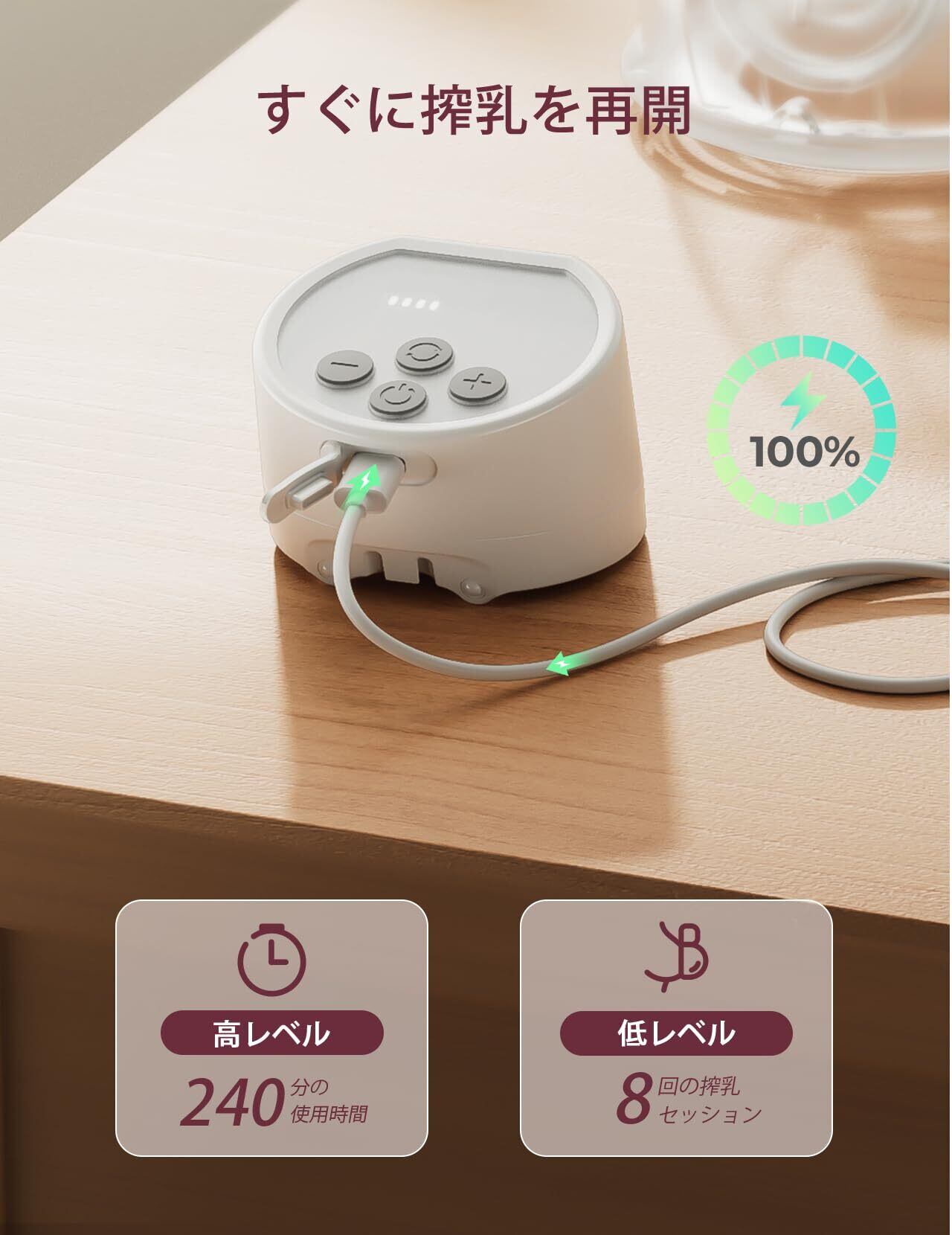 「バッテリー内蔵で、どこにでも持ち運び可能。家庭だけでなく、外出先や旅行先でも簡単に搾乳ができます。忙しいママにぴったりのアイテムです!」